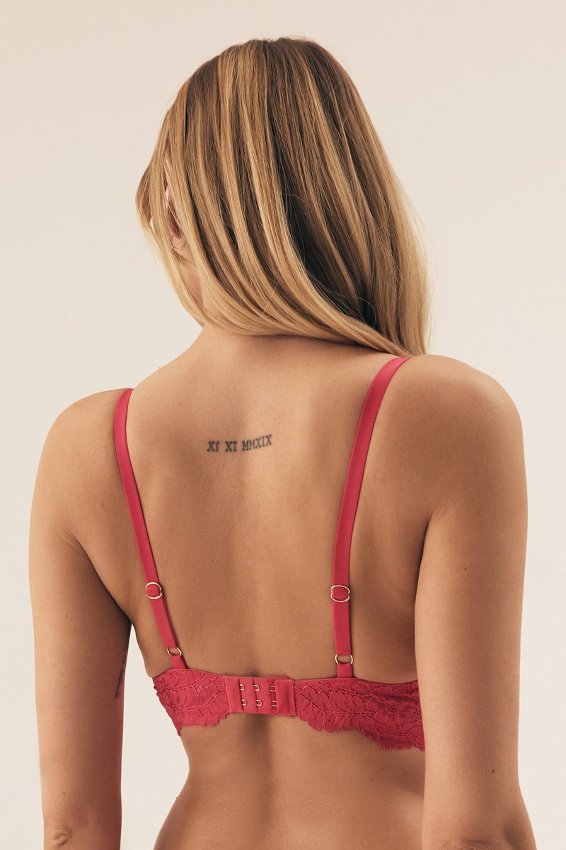 Кружевной бюстгальтер от европейского производителя Esotiq в ярком малиновом цвете. Чашки со съмными вкладышами пуш-ап, на кости. На базе CLAUDIA. Бретели регулируются по длине. Внутренний хлопковый подклад. Золотые аксессуары. Спинка на подкладе из микросетки.