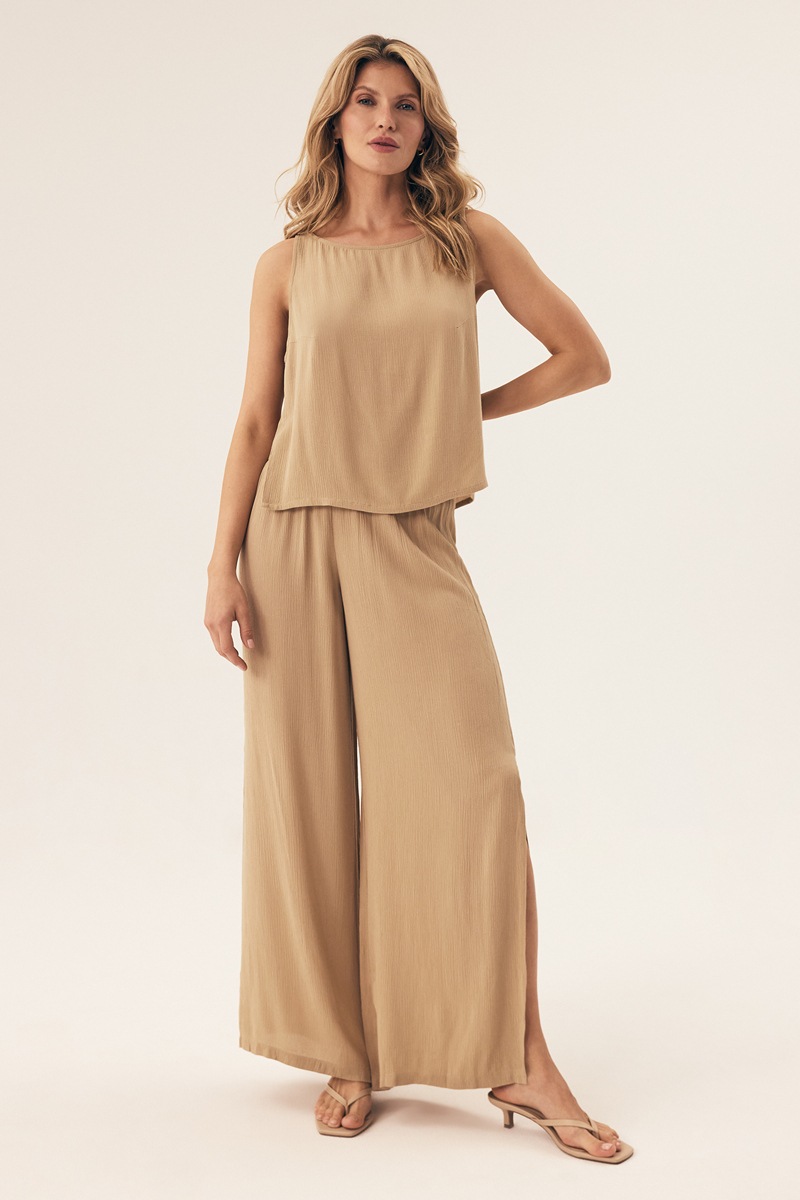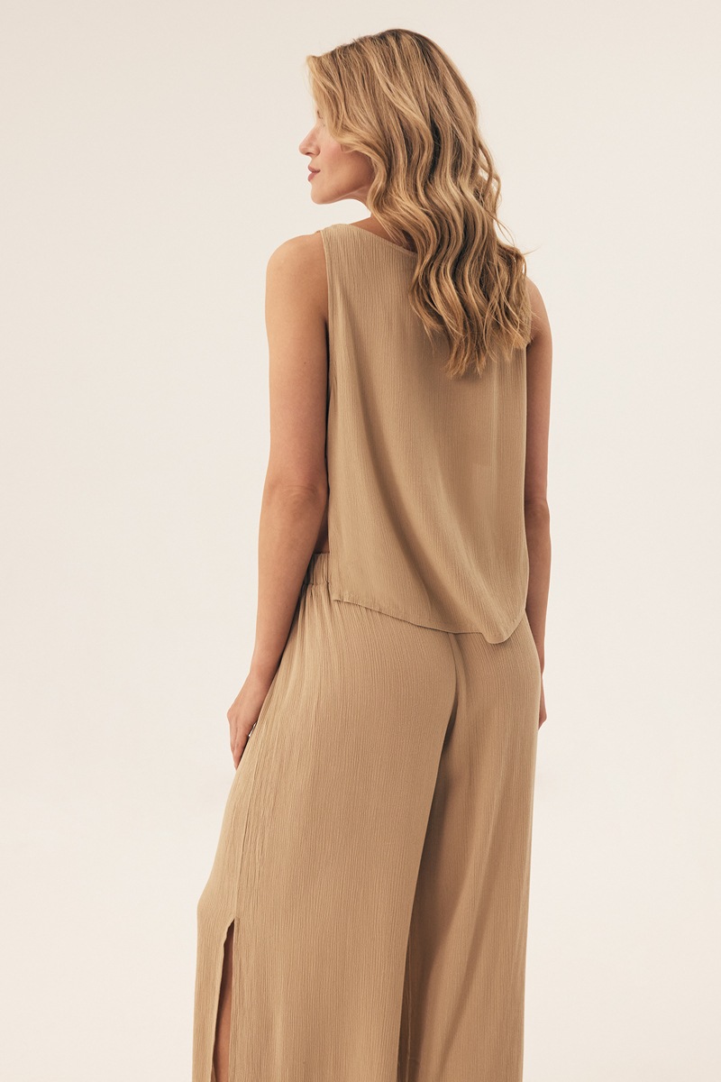 Короткий пляжный топ из вискозы от европейского производителя Esotiq. Топ свободного кроя с боковыми разрезами. Отлично сочетается с брюками арт.43151.