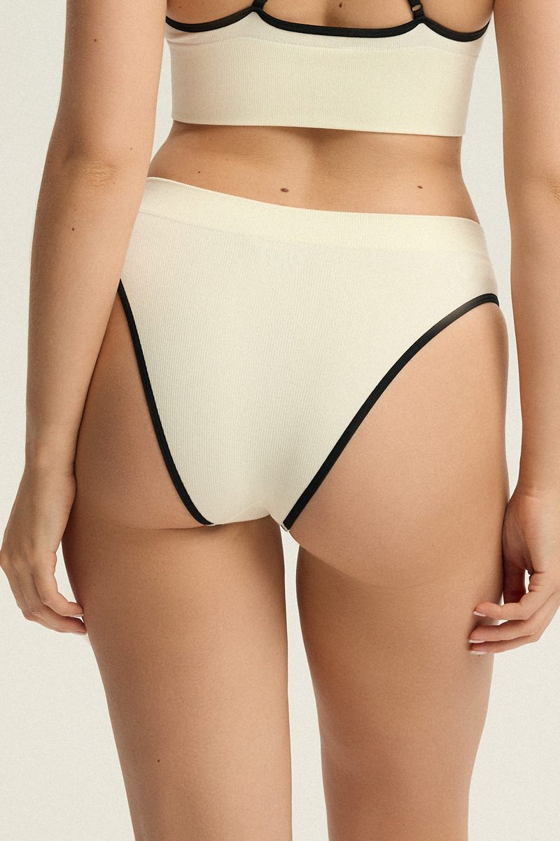 Трусики Arlan с высокой талией в цвете экрю - это сочетание естественной эстетики с удобством бесшовного дизайна. Высокая талия тонко обволакивает силуэт, а гладкая бесшовная отделка обеспечивает комфорт в течение всего дня. Светлый оттенок экрю прекрасно сочетается с нижним бельем в нейтральных тонах, создавая сплоченный, нежный образ. Текстура ткани в мелкий рубчик.