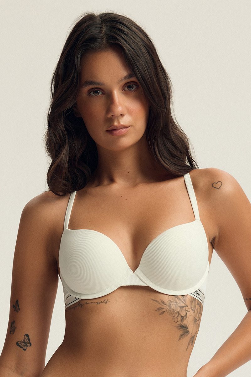Бюстгальтер Abria с встроенным пуш-ап создает основу для повседневной элегантности. Гладкие профилированные чашечки на кости слегка приподнимают грудь, а мягкая на ощупь отделка из 100% полиэстера обеспечивает комфорт даже при длительном ношении. Характерная резинка с логотипом Bloovii вдоль нижней линии придает ему современный спортивный вид, который отлично сочетается с классической формой push up. Бретели позволяют закрепить их на плечах в стиле «racerback», благодаря чему модель красиво подчеркивает линию плеч в топах с вырезом. Текстурная ткань в мелкий рубчик. Бюстгальтер создан на базе TM.
