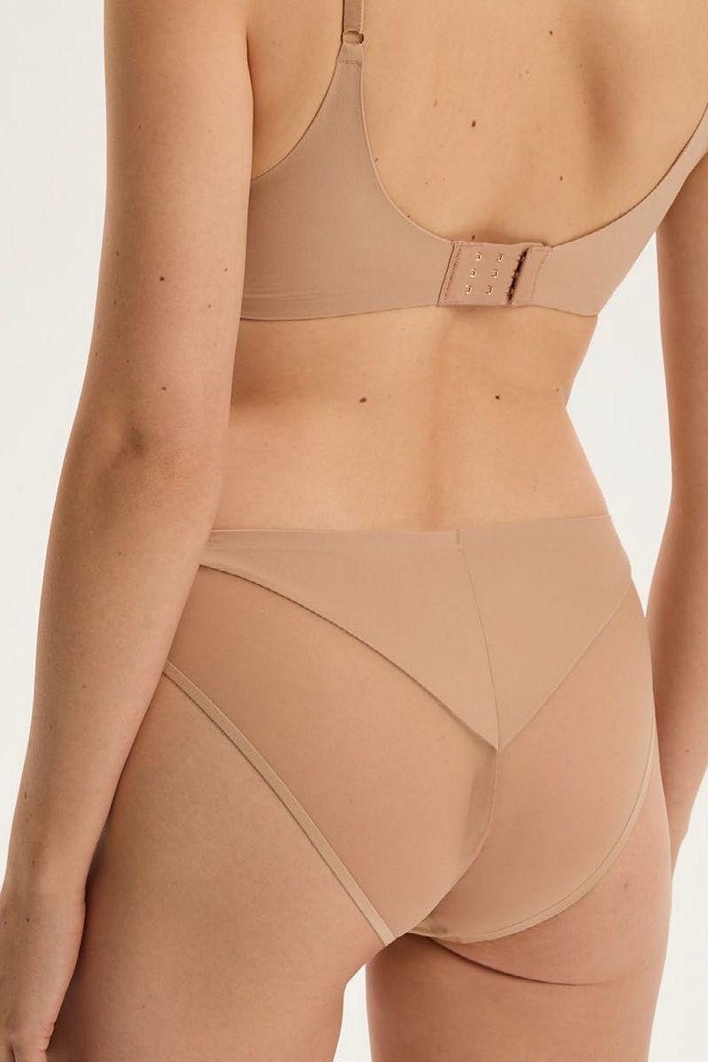 Слипы Cleary в нюдовом оттенке - это тонкая грань между гладкостью и прозрачностью. Деликатный эластичный материал мягко прилегает к телу, создавая линию, которая ненавязчиво подчеркивает женскую фигуру. Вставки из прозрачной сетки придают изделию лёгкость и современный вид, создавая эффект гармоничного контраста. Эта модель для женщин, которые ценят повседневный комфорт, но не отказываются от элегантности в мельчайших деталях. Хлопковая ластовица. Сеточка: 84% полиамид, 16% эластан.