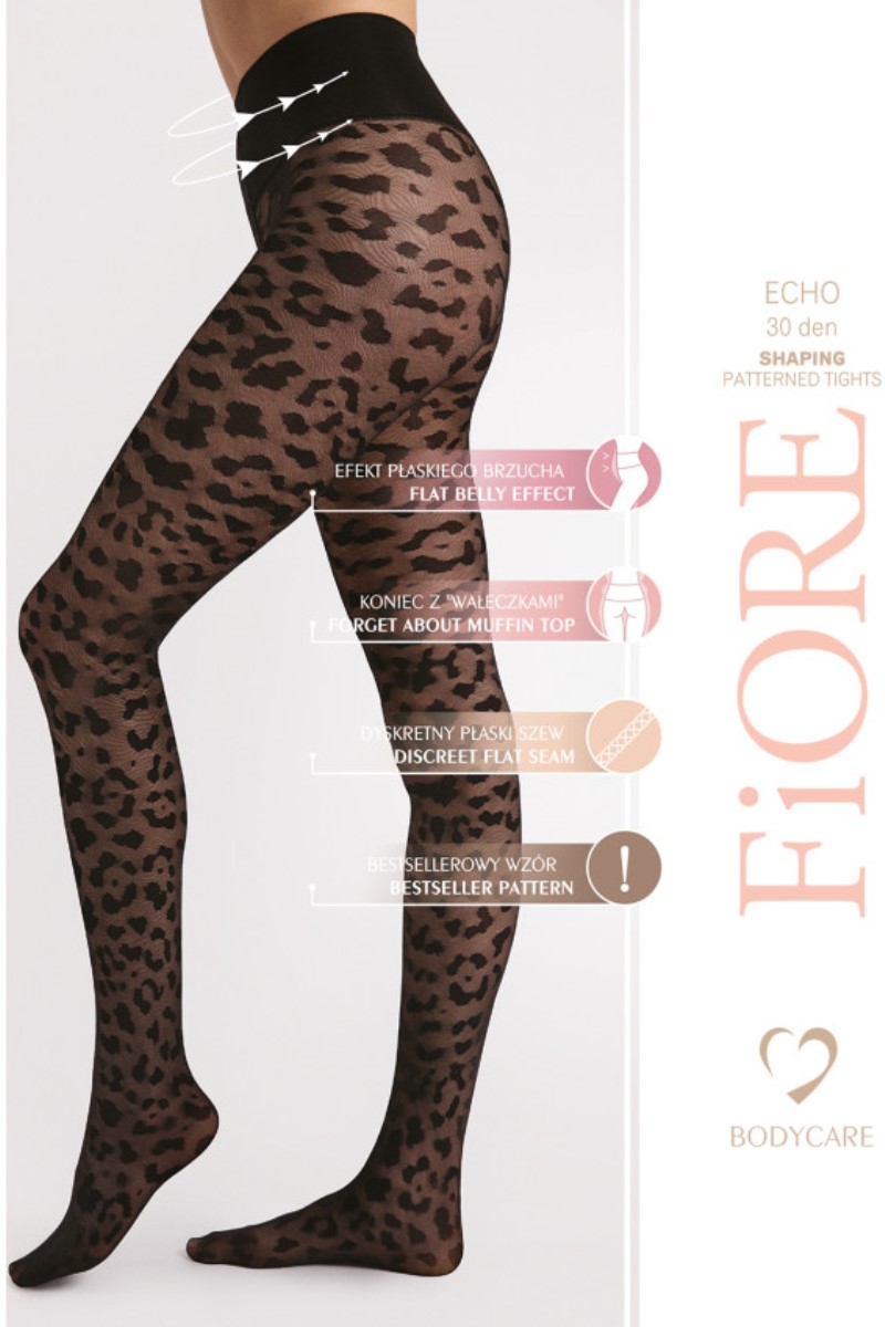 Колготки 30 DEN с рисунком и облегающим 3D-поясом, прекрасно подчеркивающим талию. Леопардовый принт всегда привлекает внимание и остается неизменно модным. Колготки также отличаются мерцанием, которое достигается благодаря специальному волокну trilobal с треугольным поперечным сечением. Надежное и одновременно комфортное облегание талии благодаря эластичной 3D-ленте FIT. Красивое мерцание благодаря использованию трилобала, который отражает свет под разными углами. Высококачественная специальная пряжа от известных европейских производителей.