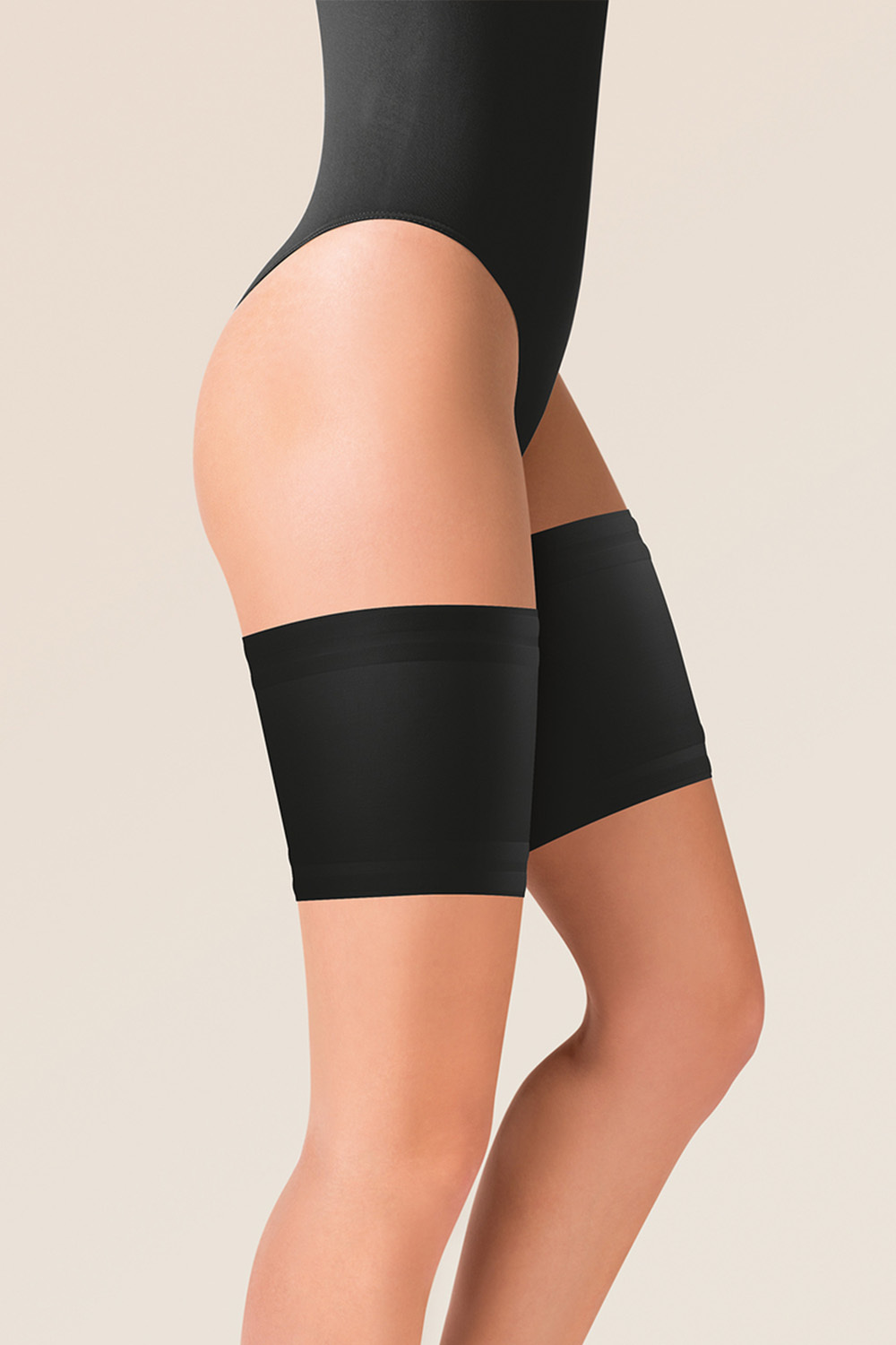Черные атласные повязки на бедро с силиконовой поддержкой. В комплекте 2 повязки (, по одной на каждую ногу), . Обеспечивает комфорт и защиту от истирания.