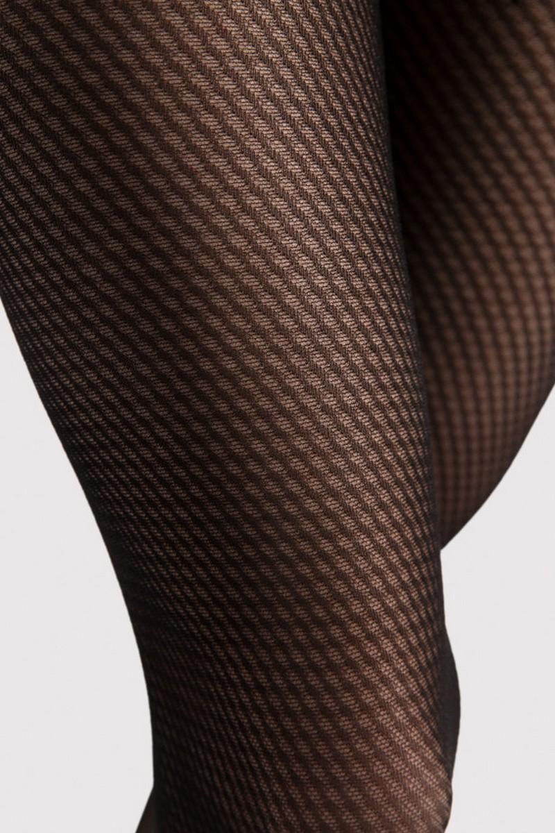 Элегантные и прочные колготки с косыми узорами. Выполнено по технологии 3D для повышенного комфорта и долговечности. Классические матовые колготки в мелком сетчатом узоре, обеспечивающие идеальное прилегание к ногам, узор распространяется по всем колготкам, в том числе по части трусов и невидимо усиленной части пальцев. Материал от известных европейских производителей.