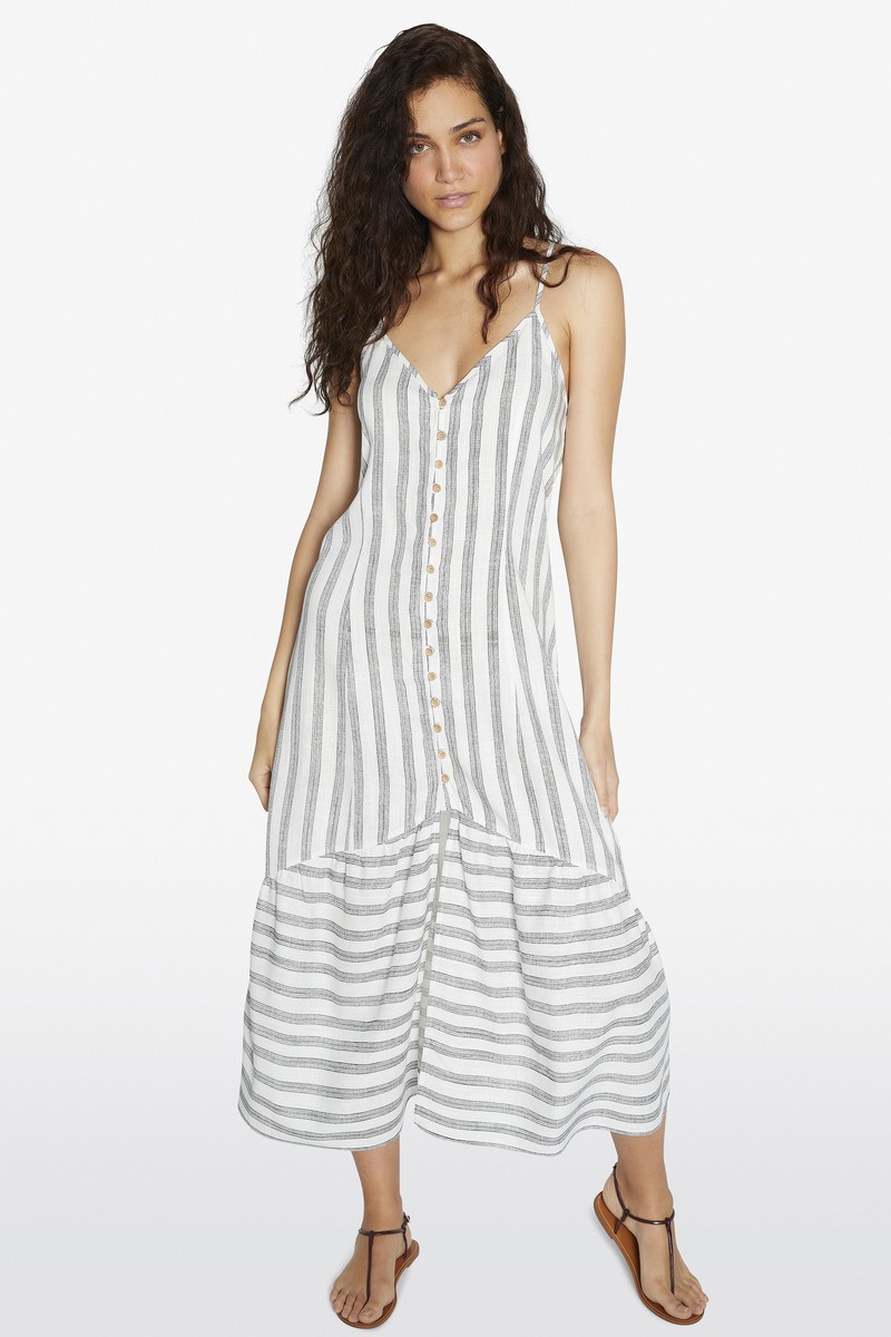 Туника 85823 от европейского производителя Ysabel Mora. Изделие свободного кроя, с планкой из пуговиц. Бретели несъемные, регулируются по длине.