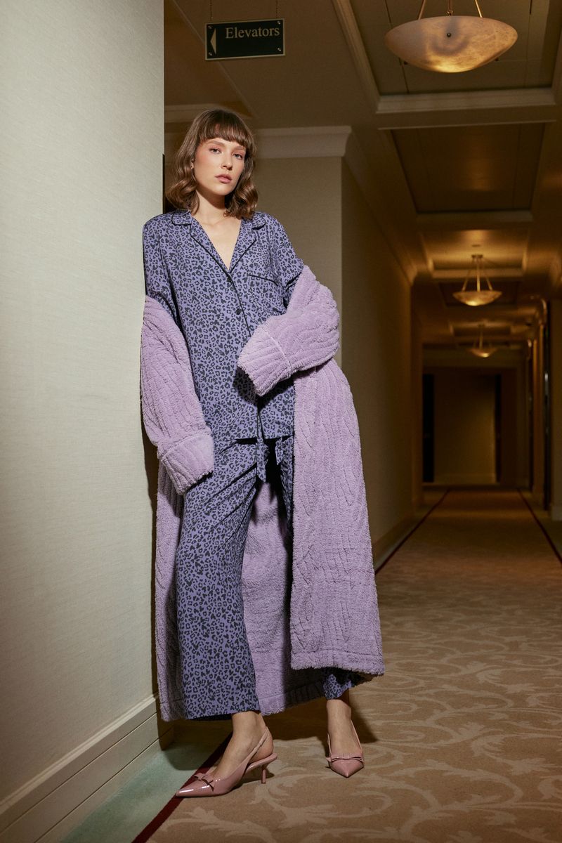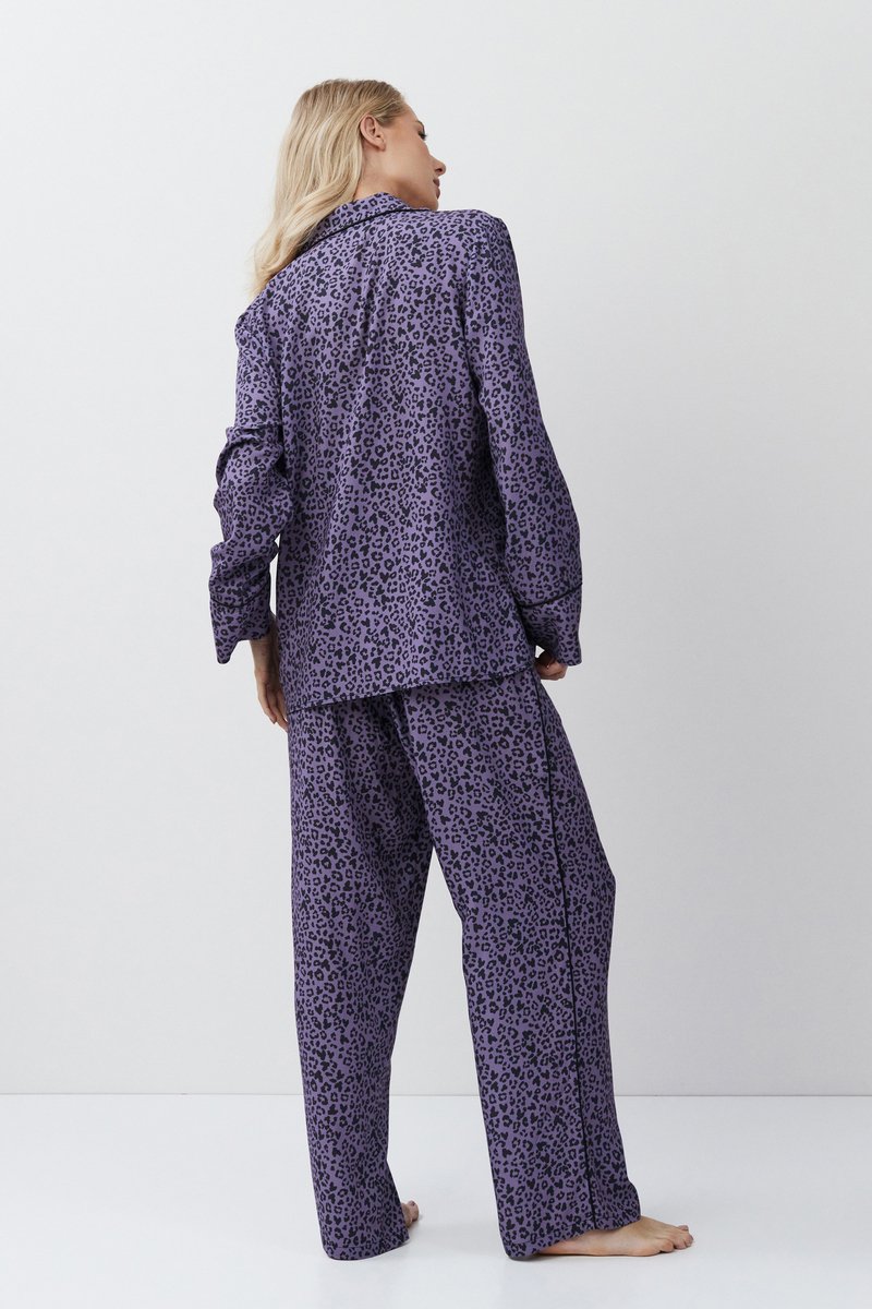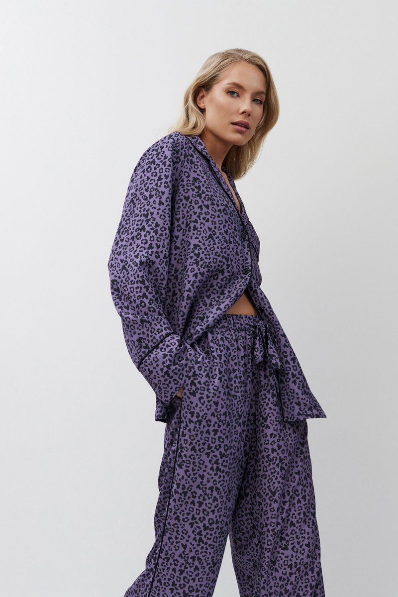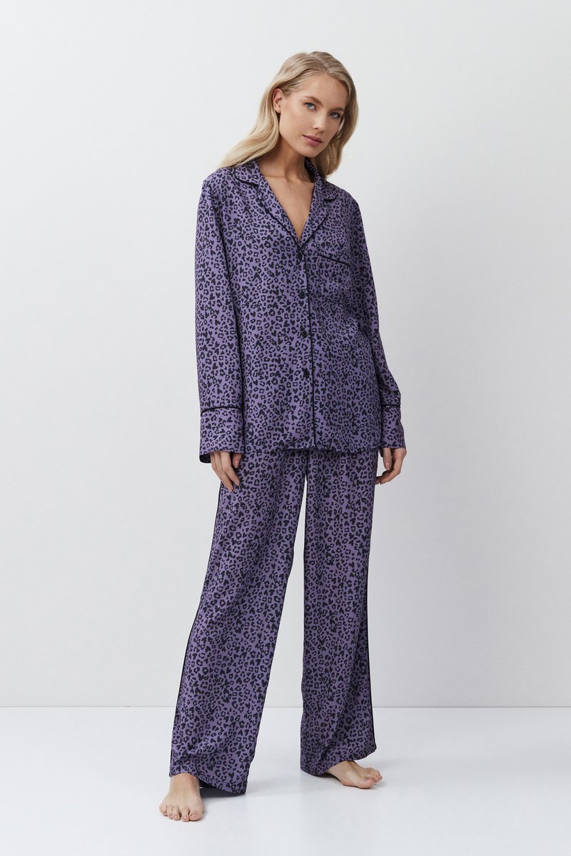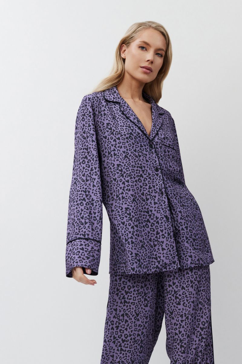 Пижама женская со штанами ALIX для вашего ночного комфорта. Пижама выполнена из вискозы. Рубашка на пуговицах, с длинными рукавами, отложным воротником и нагрудным карманом. Окантовка дополняет и украшает комплект. Штаны свободные, с эластичным поясом с завязкой. Расслабьтесь с максимальным комфортом и стилем в пижаме ALIX.