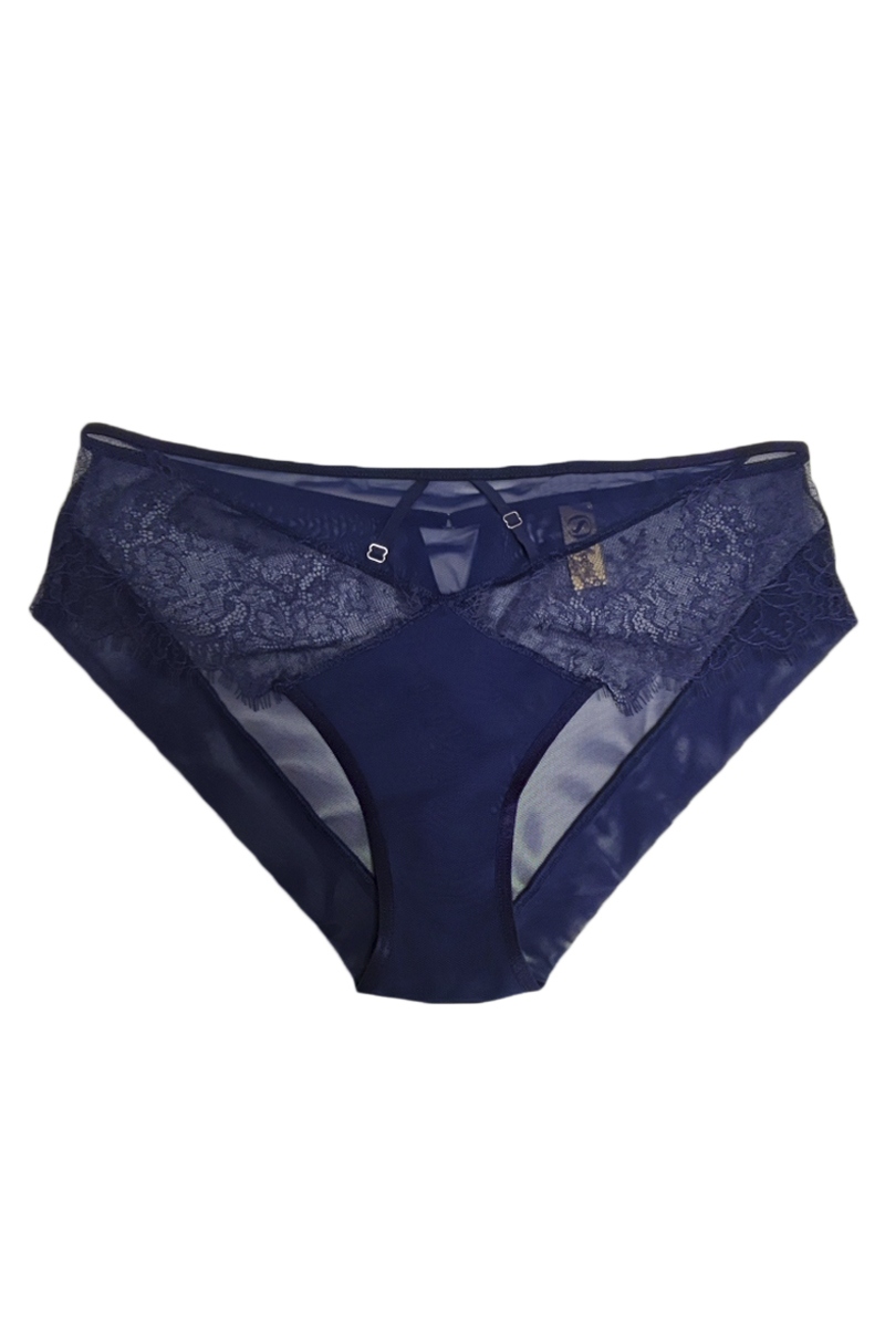 Трусы AMINA с высокой посадкой от европейского производителя Subtille. Выполнены из кружева с тонкими нежными ресничками и эластичного микротюля, дублированного локально вставками по передней и задней стороне. Декоративные союзки с серебряными украшениями и V-образный вырез дополняют трусики и создают непрезвойденный вид. Ластовица хлопковая.