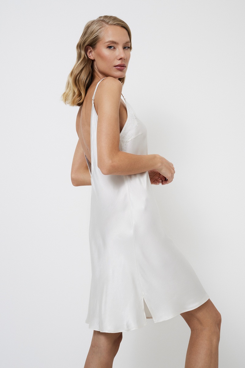 Окунитесь в мир элегантности и мечтательности в ночной сорочке Aphrodite. Она изготовлена из блестящей вискозы и создана для того, чтобы вы чувствовали себя такой же великолепной, как греческая богиня, в этот особенный день. V-образный вырез, украшенный кружевом, регулируемые бретели и вытачки на груди обеспечивают удобную посадку, а глубокий V-образный вырез на спине добавляет привлекательности. Строчки по центру спинки и по бокам добавляют замысловатые детали к однотонному жемчужному полотну. Вдохновлённая элегантностью греческой богини Афродиты, эта ночная сорочка воплощает неподвластную времени красоту, что делает её идеальным выбором для невест, стремящихся к элегантности и изяществу в свой особенный день.