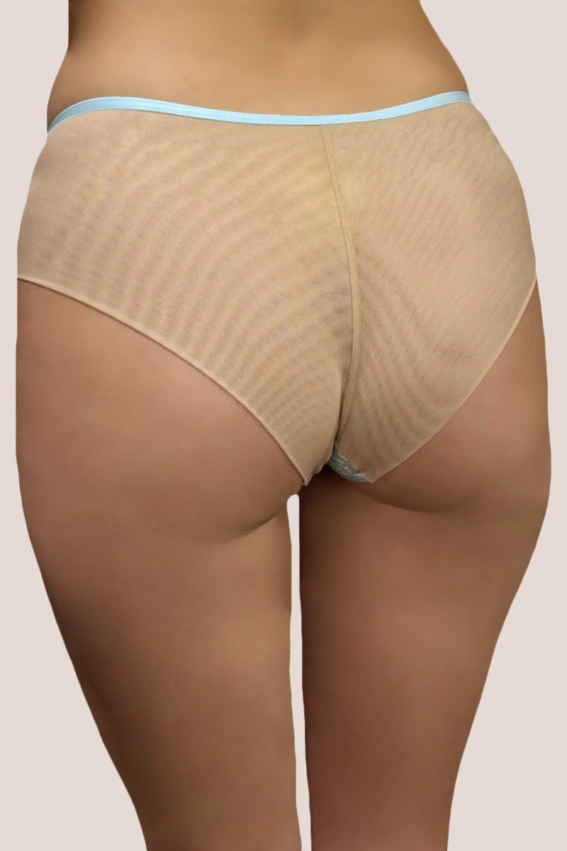 Трусы слипы AQUAMARINE от европейского производителя Subtille. Модель комфортной средней посадки. Выполнены из нежного кружева и микротюля, сзади из двойного микротюля. Ластовица хлопковая. Фирменный логотип бренда.