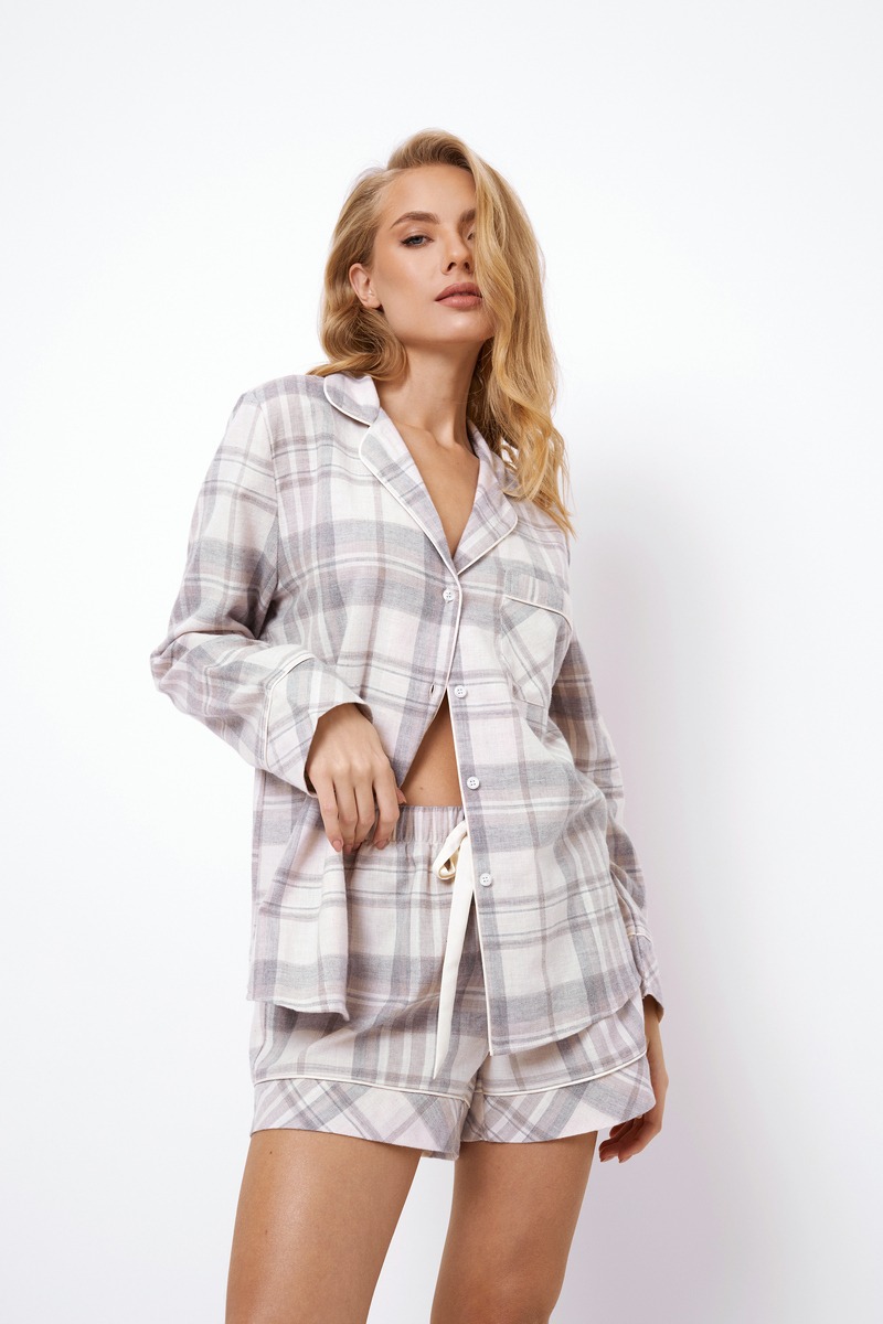 Наслаждайтесь мечтательным ночным сном в этом очаровательном пижамном комплекте Авери. Пижама изготовлена из фланелевой хлопчатобумажной ткани в клетку. Верх классического рубашечного кроя украшен кантом на воротнике, манжетах и нагрудном кармане. А шорты прямого кроя украшены красивым регулируемым сатиновым бантом на талии, боковыми карманами и окантовкой снизу.