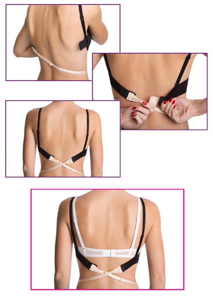 Простой и эффективный способ для понижение застежки бюстгальтера. Застежка подходит ко всем типам бюстгальтеров, что позволит вам носить классический бюстгальтер под очень декольтированные на спине наряды.
