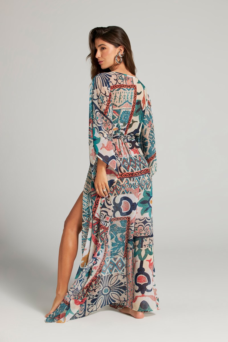 Роскошная удлиненная туника в стиле пэтчворк от колумбийского бренда Cosita Linda. Модель выполнена из высококачественной ткани с эксклюзивными дизайнерскими аксессуарами ручной работы. Открытые разрезы и широкий рукав добавляют женственности в ваш образ, а стяжка-пояс на талии смотрится эффектно и превносит свой шарм. Бренд уделяет большое внимание защите природы, поэтому все свои изделия производит из современной переработанной эко ткани по технологии Less Water.