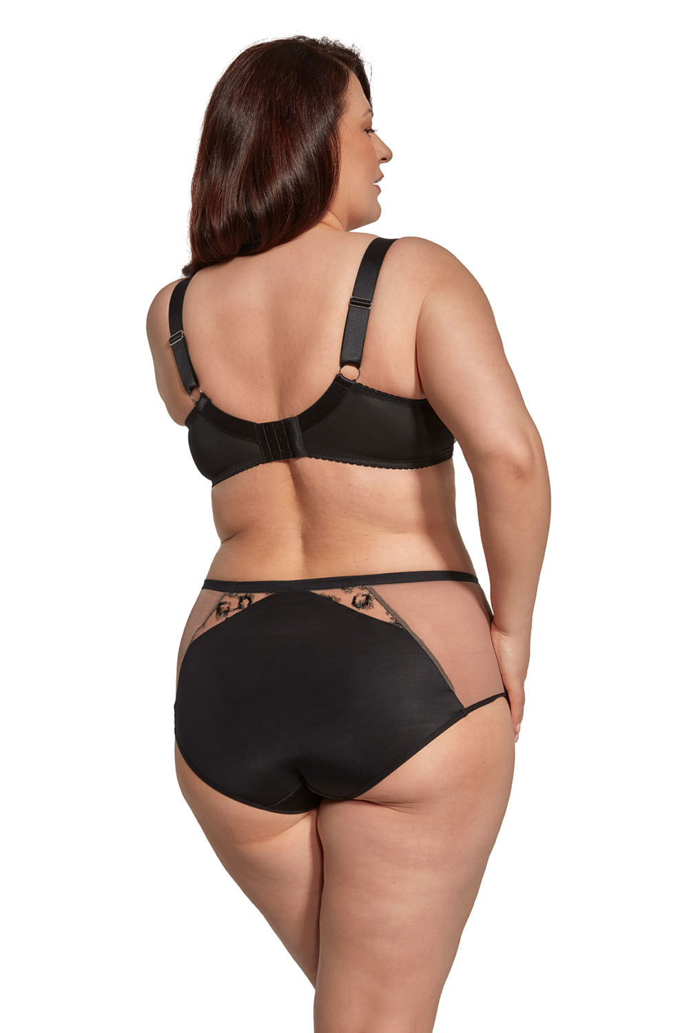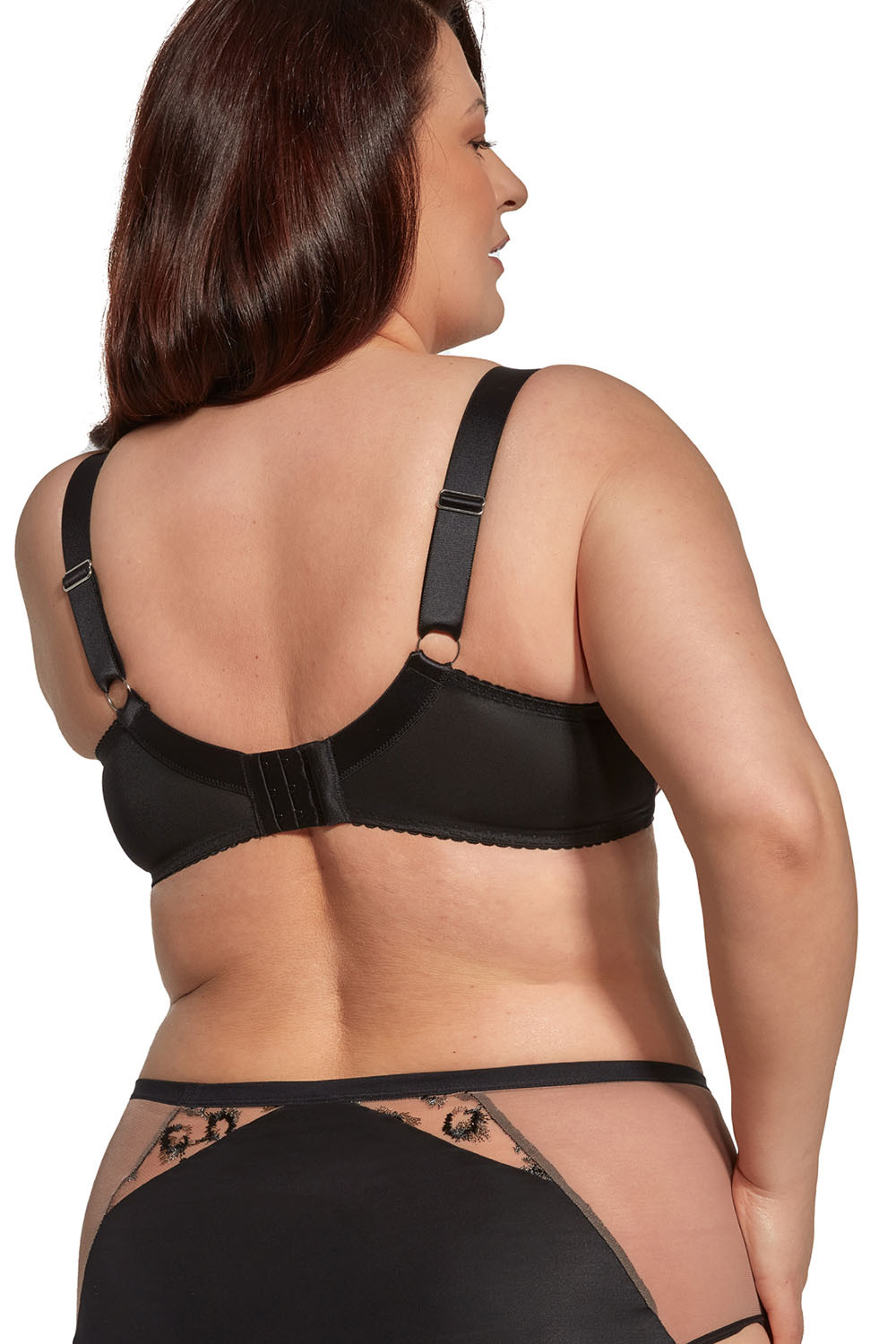 Черный мягкий бюстгальтер из линейки Black Panther, который доступен в расширенном количестве размеров. Причудливое сочетание качественной анималистичной вышивки с гладкой микрофиброй. Боковая часть чашки входит в бретель и аккуратно формирует и приподнимает бюст, создавая красивую и женственную форму. Ширина бретелей зависит от размера и позволяет подобрать оптимальную посадку. Двойные подвижные косточки адаптируются к телу при каждом движении, обеспечивая идеальную поддержку и комфорт.