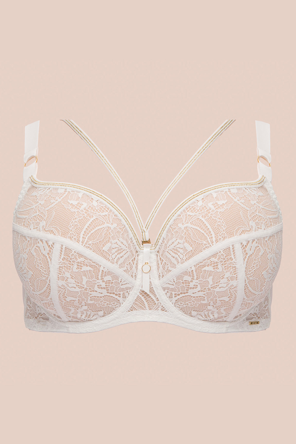 Кружевной бюстгальтер Chiara Gold M с чашками на каркасах. Бретельки регулируются по длине, на спине застежка на крючки-петли.