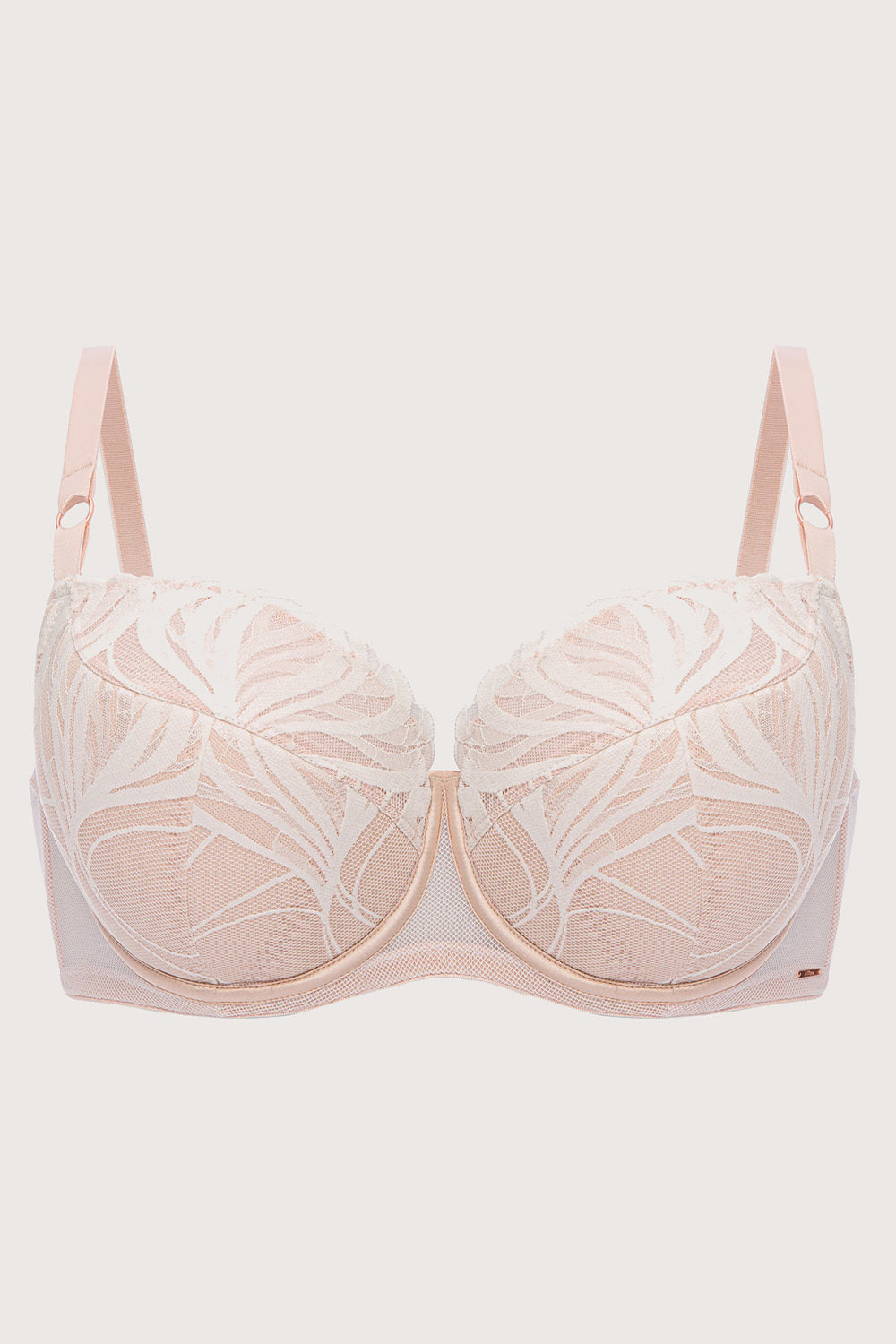 Кружевной бюстгальтер Creme Brulee на косточках, с боковой поддержкой, нижняя часть чашки на уплотнителе, верхняя из нежного кружева. Внутри чашечки проложены хлопковым трикотажем. Бретельки не отстегиваются, регулируются по длине. На спинке застежка регулируется.