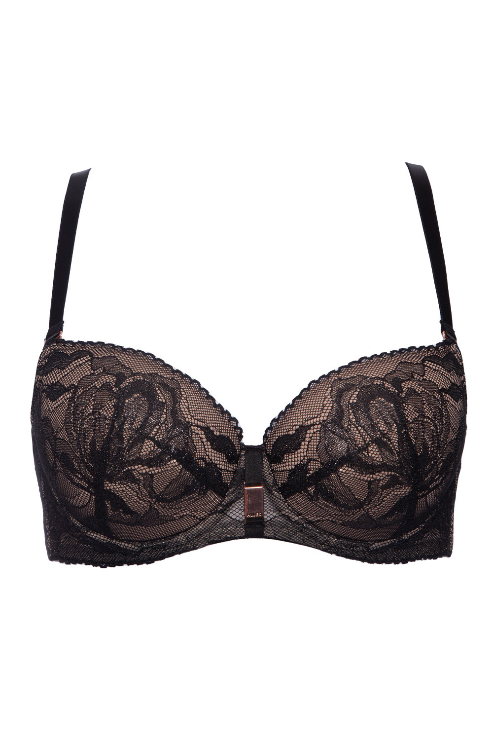 Кружевной бюстгальтер Frozen Black 01 на уплотненной поролоновой чашке. Внутренняя сторона чашки проложена хлопковым трикотажем. Бретельки регулируются по длине, на спине застежка на крючки-петли. Комфортный бюстгальтер подойдет под любую одежду. Чашечки поддерживают и максимально увеличивают бюст, создают пышное декольте.
