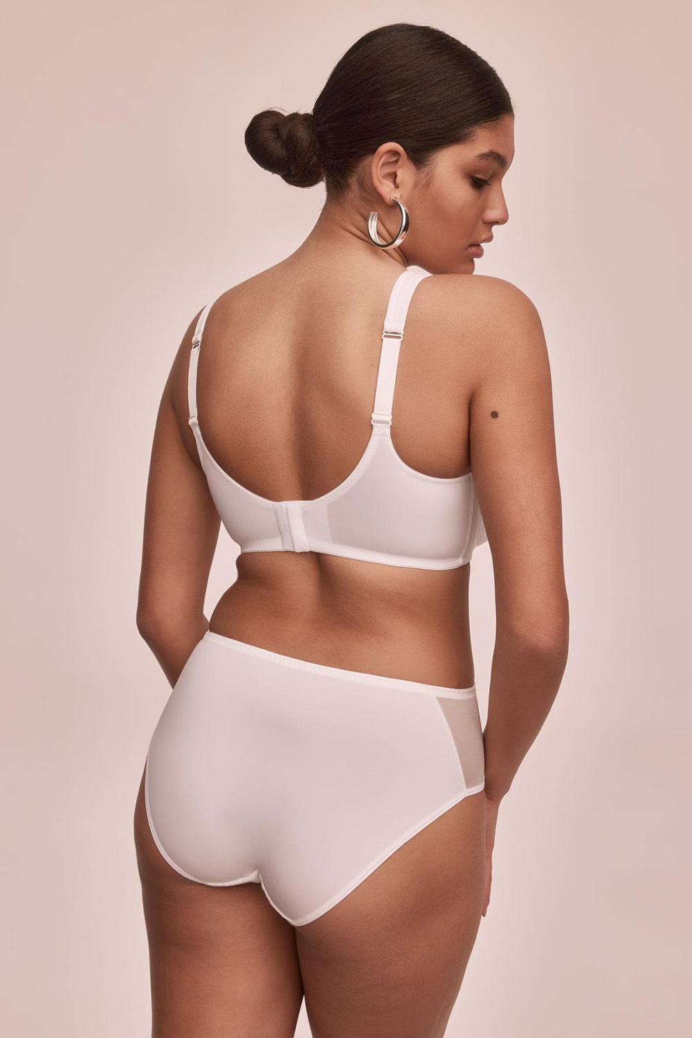 Бюстгальтер с мягкой чашкой на косточках, выполнен из эластичной микрофибры. Верхняя деталь чашки выполнена из эластичной сетки. Внутренняя поверхность чашек 100% хлопок. Бретели широкие, несъёмные, регулируемые по длине.