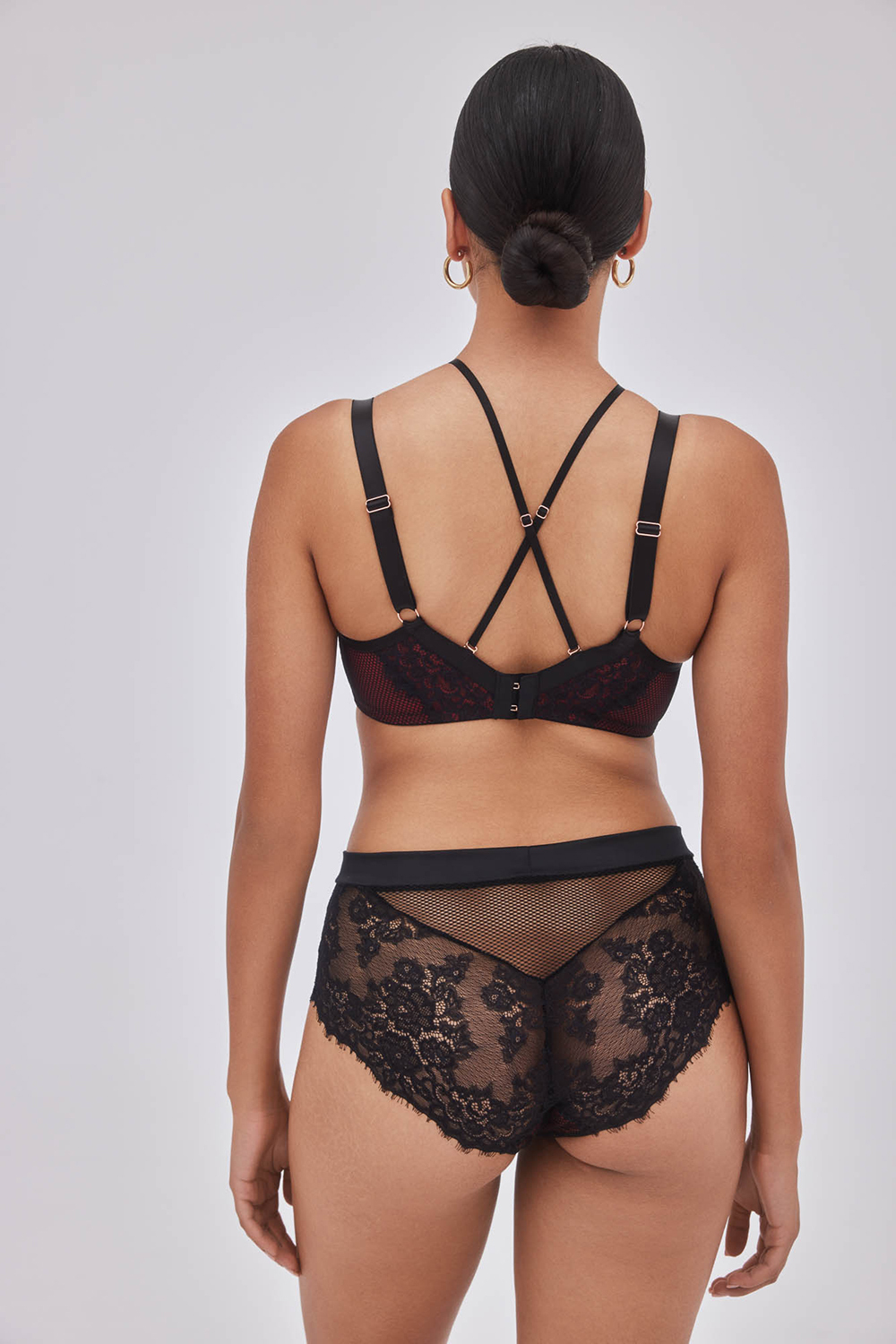 Роскошный бюстгальтер Heartbeat на косточках. Чашки на тонком полупоролоне. Внутренняя сторона чашки проложена хлопковым трикотажем, наружная покрыта роскошного кружева с цветочным узором. Широкие бретельки регулируются по длине. На спине застежка на крючки-петли. Чашки поддерживают и приподнимают бюст, сохраняя при этом его естественную форму. Данная модель идеально подойдет под любую одежду. Бюстгальтер украшен съемными стрепами и золотистым колечком между чашек.