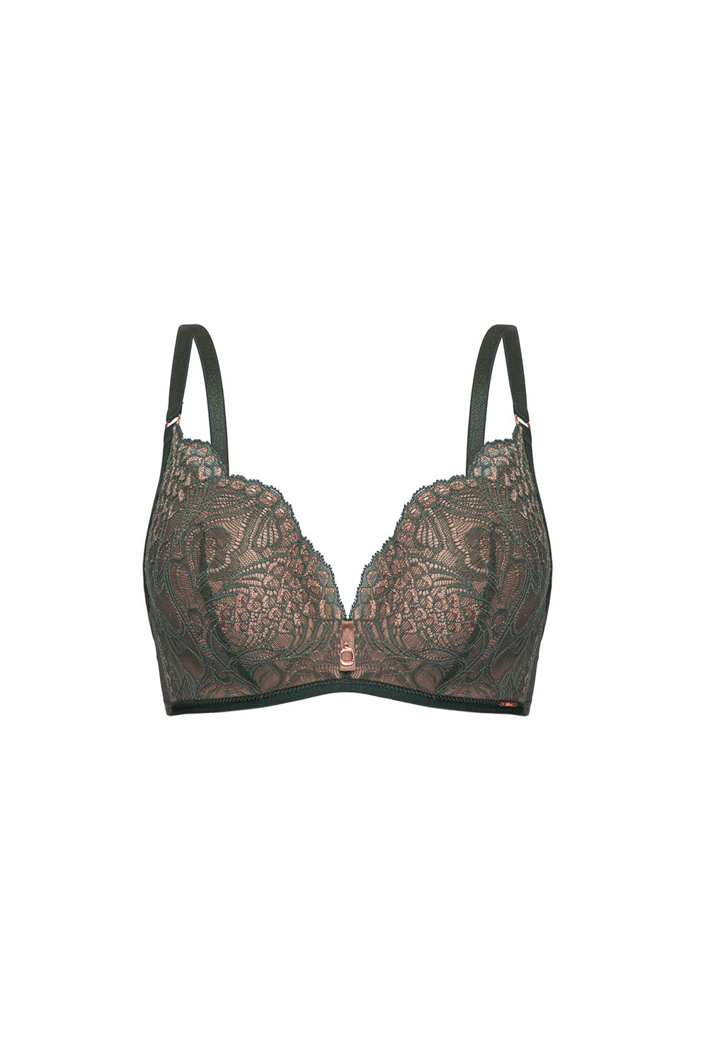 Бескаркасный кружевной бюстгальтер Lusso Super P-UP с формованными чашками. Внутренняя сторона чашки проложена хлопковым трикотажем. Бретельки регулируются по длине, на спине застежка на крючки-петли. Между чашек украшение в виде атласной ленты с подвеской. Комфортный бюстгальтер подойдет под любую одежду. Чашечки поддерживают и максимально увеличивают бюст, создают пышное декольте.