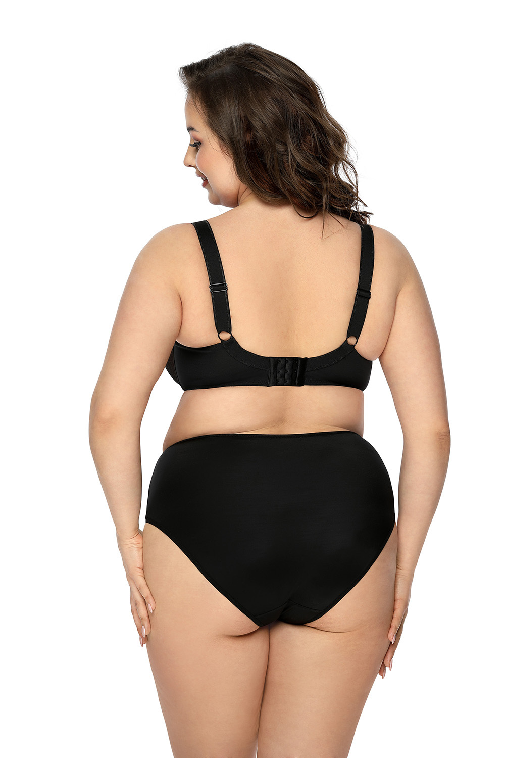 Элегантный мягкий бюстгальтер Aggie черного цвета, предназначенный для женщин с большой грудью. Чашки трехчастные из полупрозрачного эластичного фатина, нижняя часть чашки усилена. Крой чашек мягко приподнимает грудь, придавая ей красивую, естественную форму. Спинка выполнена из ткани типа лайкры. Очарование модели придает шикарный бант с цирконом, размещенный между чашечками. Регулируемые несъемные бретели. Крючки двух- или трехрядные (, в зависимости от размера), с трехступенчатой регулировкой.