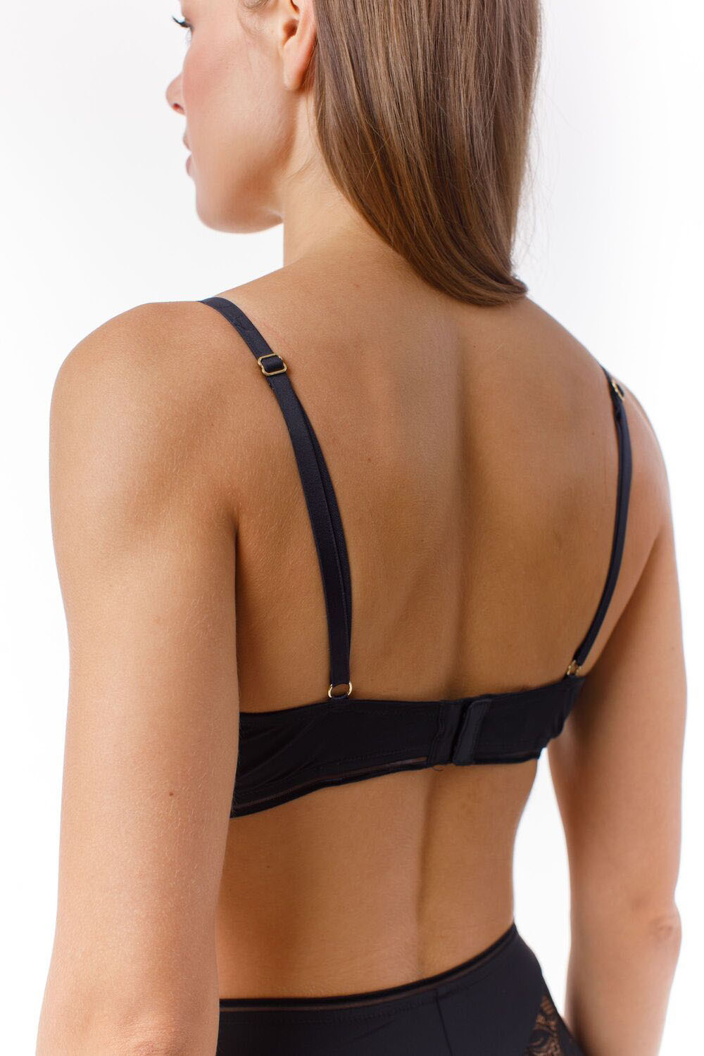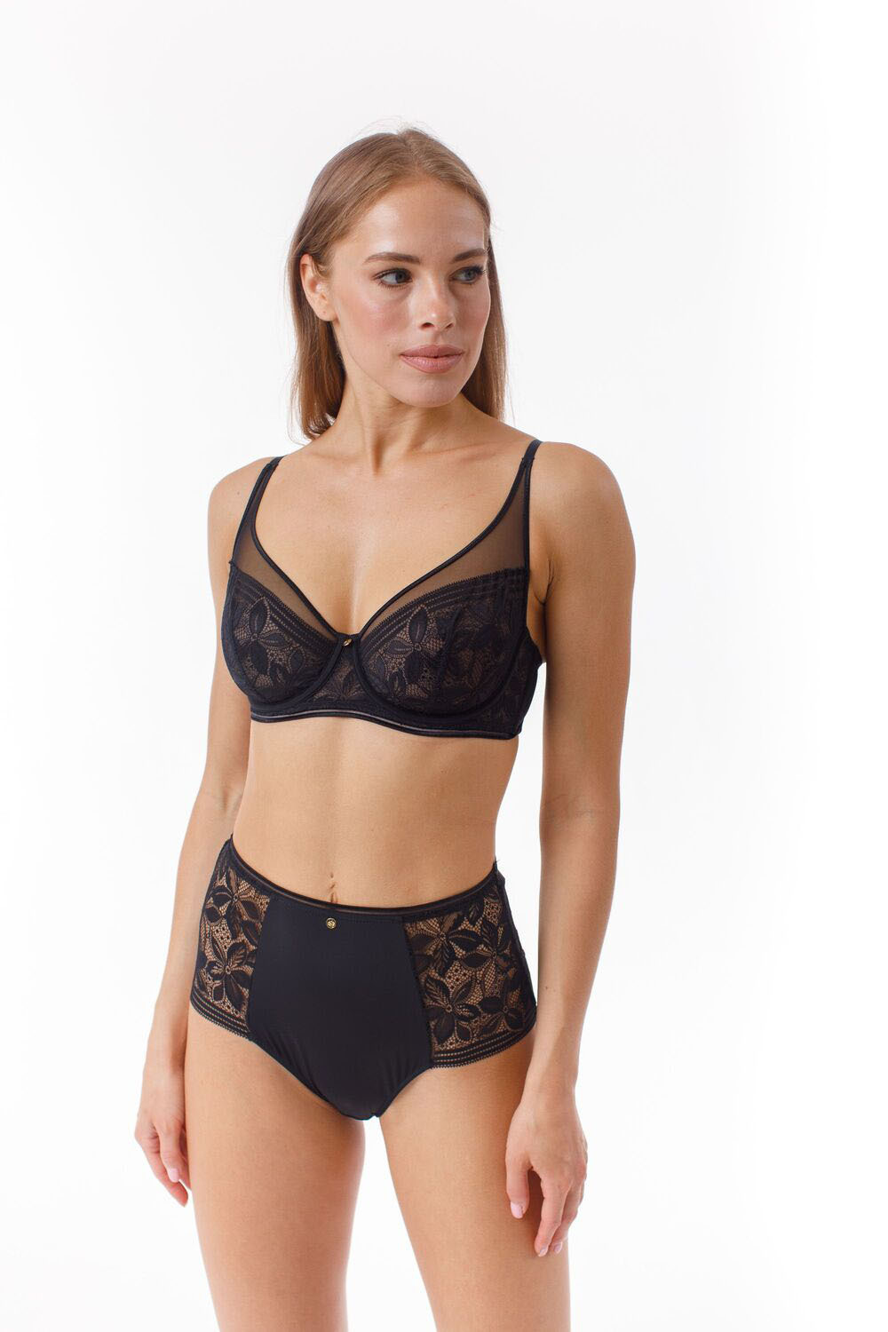 Мягкая чашка выполнена из эластичного кружева с рисунком в модных тенденциях. Конструкция Т образной чашки придает груди привлекательную округлую форму. Боковые детали укреплены вертикальной пластиной.Украшение: медальон с логотипом COQUETTE REVUE.