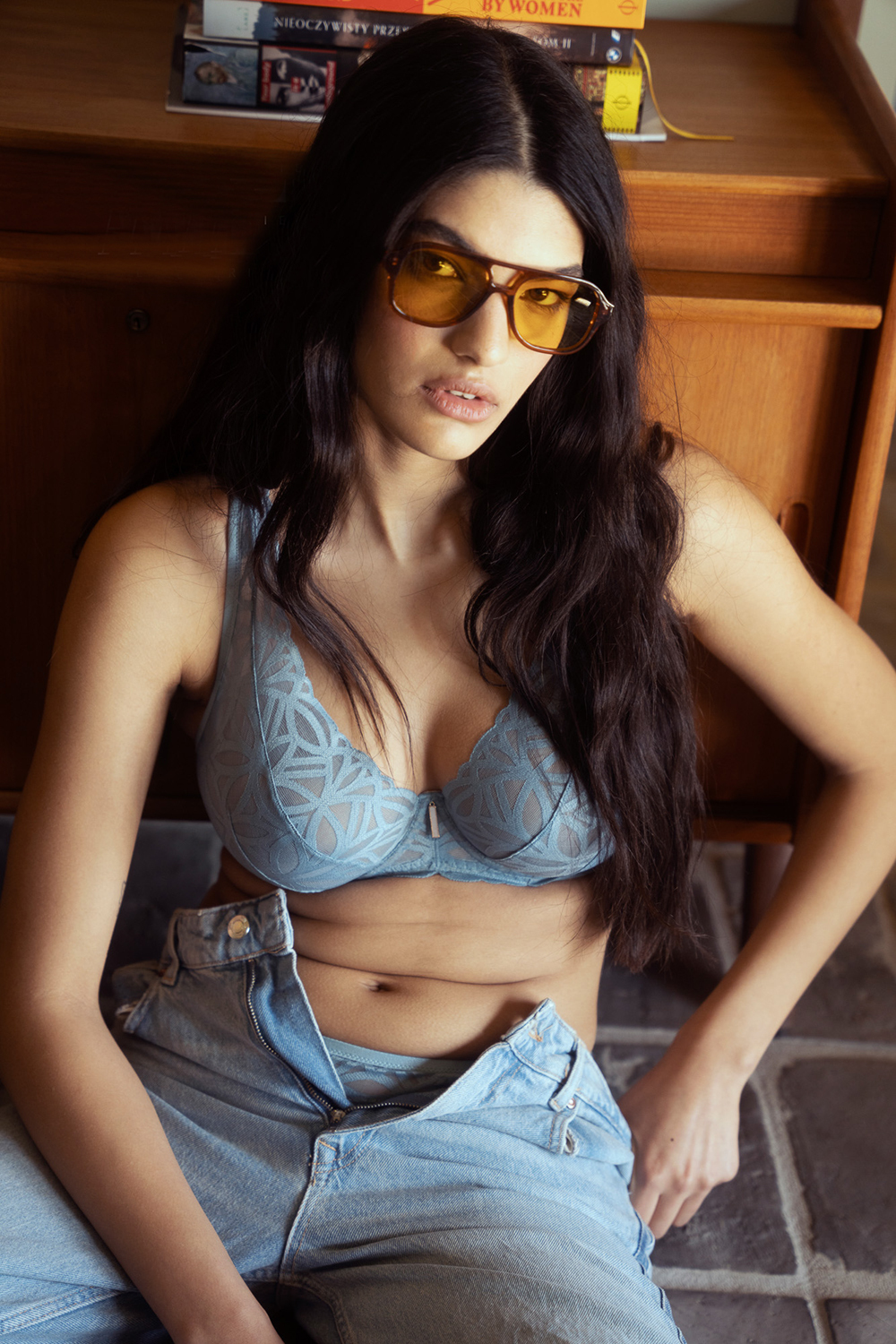 Бюстгальтер-бралетт Salt&Sea с мягкой чашкой на косточках, с боковой поддержкой. Внутри чашечки продублированы нежной сеточкой, внешняя сторона чашек покрыта красивым кружевом с растительным узором. Бретели несъёмные, регулируемые по длине. На спинке регулируемая застежка. Между чашек украшение в виде кристалла.