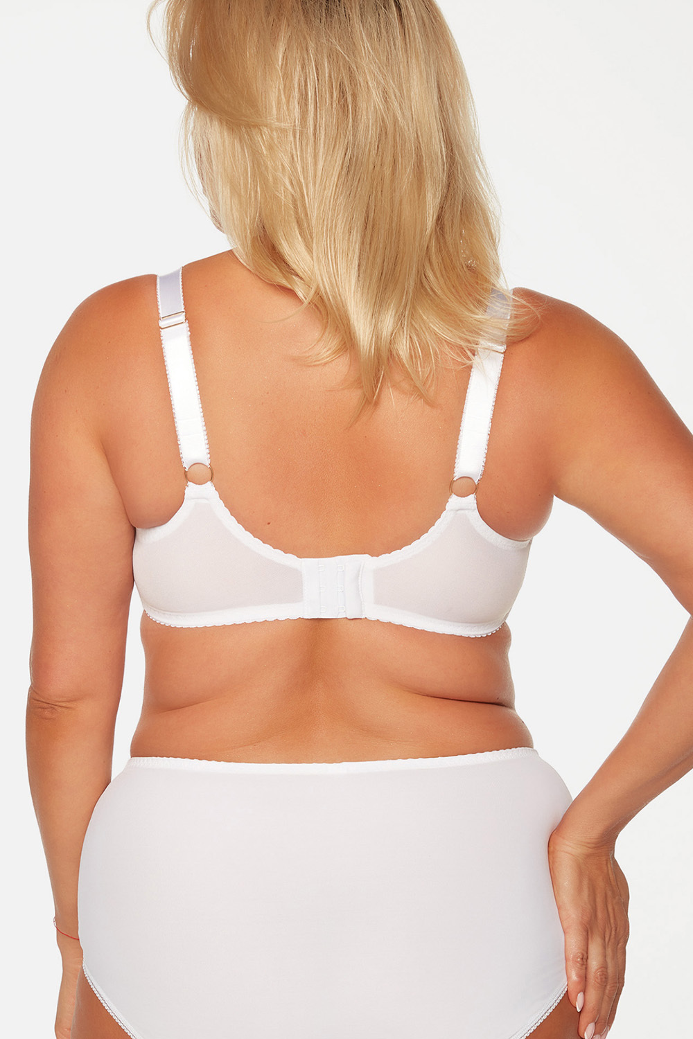 Белый мягкий бюстгальтер Subtle Temptation сочетает в себе элегантность и комфорт для полных женщин. Чашка с тройным членением и двойная усиленная боковая часть собирают грудь внутрь, придают бюсту приподнятый и округленный вид. Подкладка из мягкой прочной сетки в нижней части чашки добавляет легкости и комфорта при ношении. Двойные подвижные боковые косточки гарантируют адаптацию к движению тела и повышают комфорт при ношении. Тройной крючок всех размерах.
