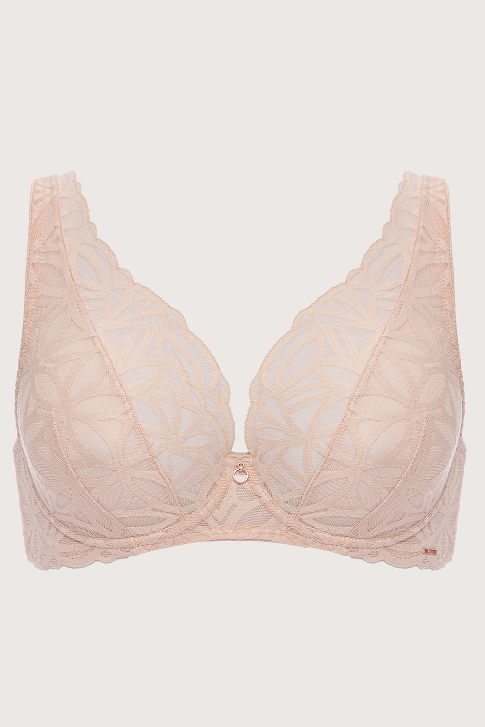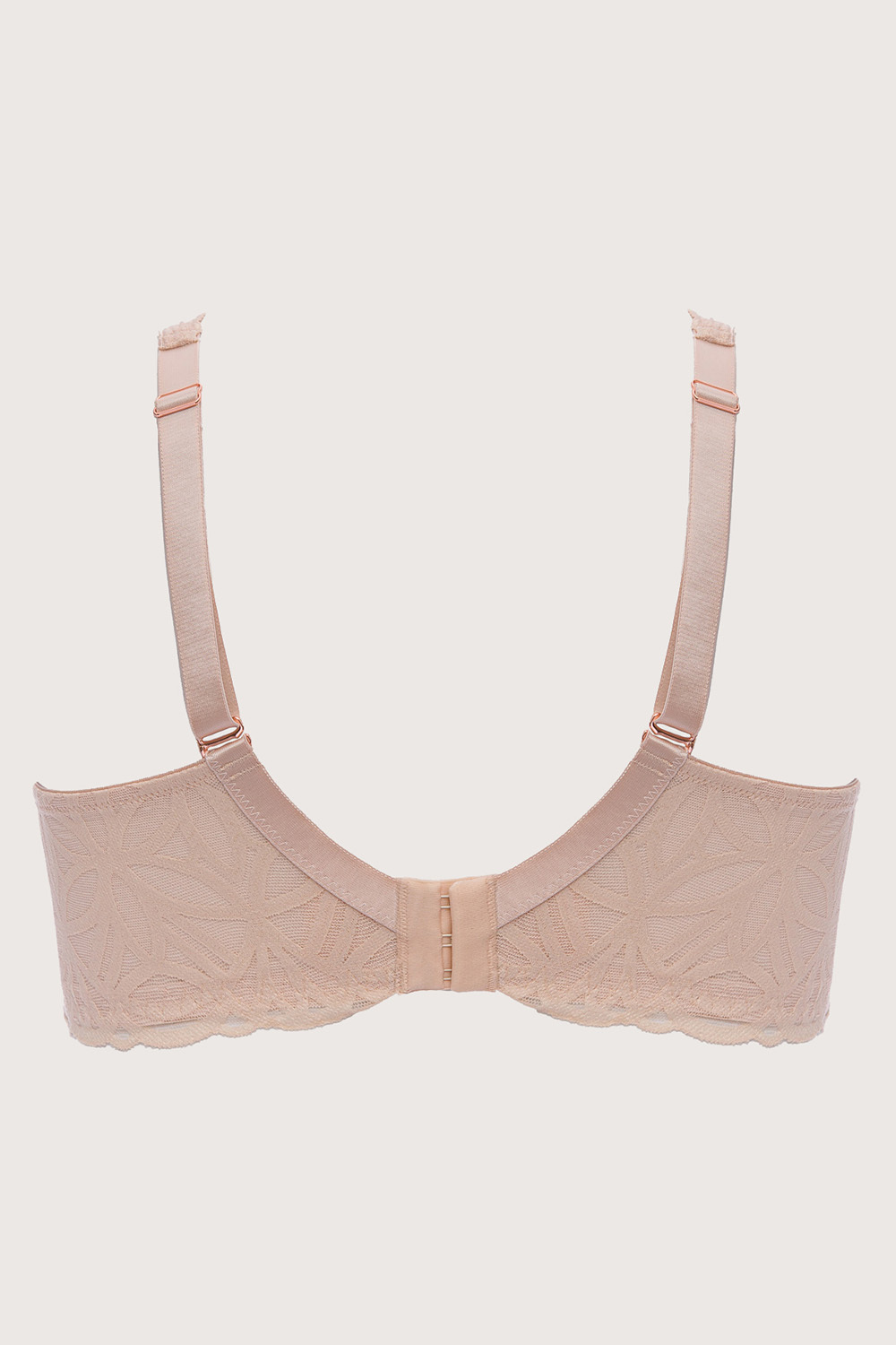 Бюстгальтер-бралетт Sugar Dune для большой груди с мягкой чашкой на косточках, с боковой поддержкой. Внутри чашечки продублированы нежной сеточкой, внешняя сторона чашек покрыта красивым кружевом. Бретели несъёмные, регулируемые по длине. На спинке регулируемая застежка. Между чашек украшение в виде красивой подвески.
