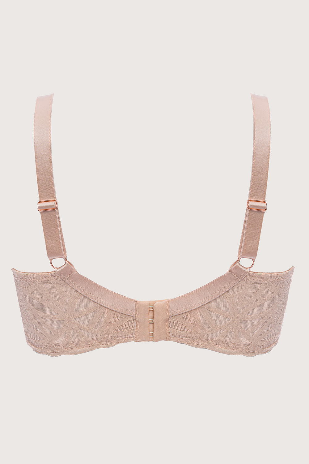 Бюстгальтер Sugar Dune на косточках, с боковой поддержкой, нижняя часть чашки на уплотнителе, верхняя из нежного кружева. Внутри чашечки проложены хлопковым трикотажем. Бретельки не отстегиваются, регулируются по длине. Между чашек красивое украшение в виде подвески. На спинке застежка регулируется.