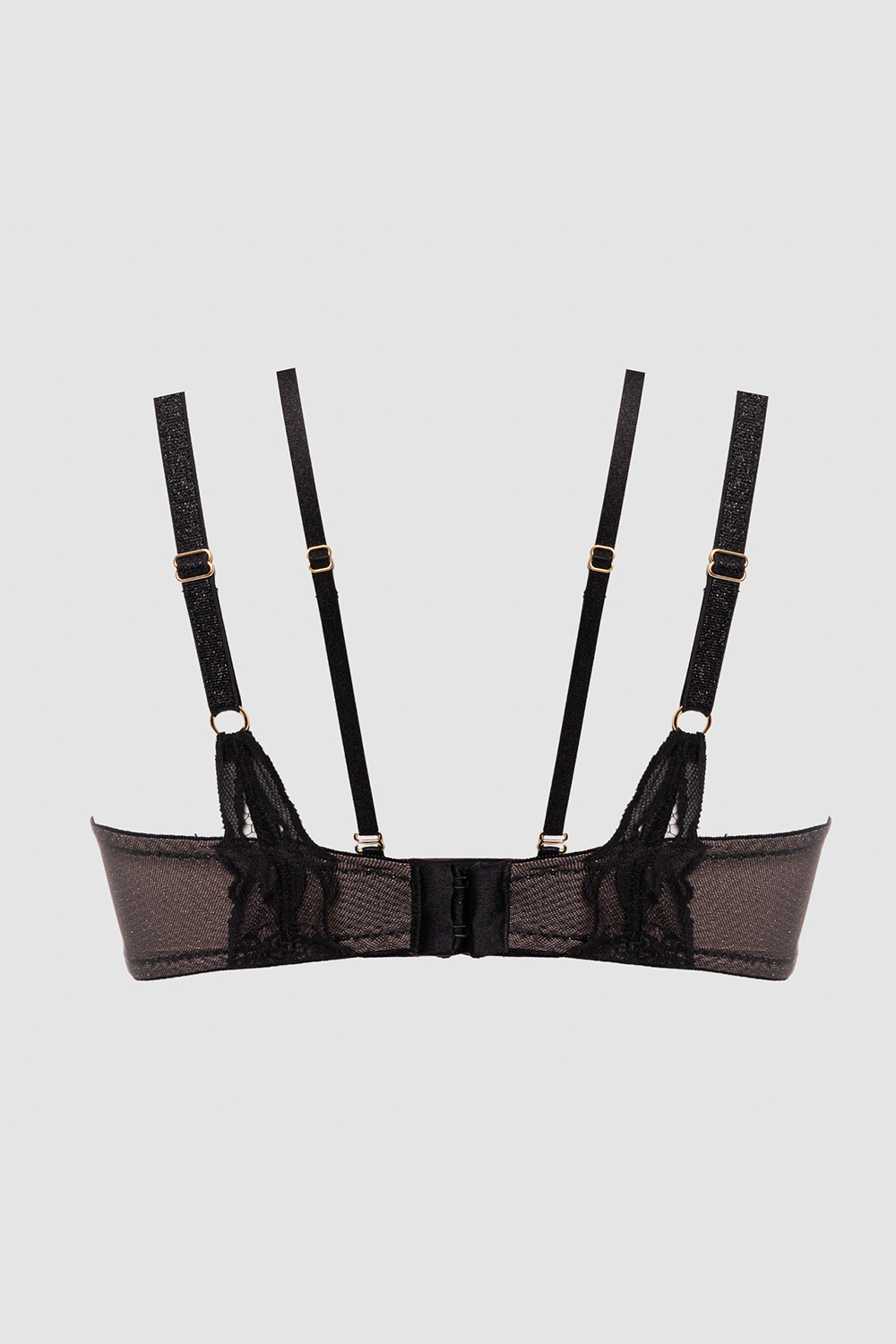 Изысканный бюстгальтер The Icon на косточках. Чашки на тонком поролоне с пуш-ап вкладышами. Внутренняя сторона чашки проложена хлопковым трикотажем, наружная покрыта красивым кружевом. Бретельки регулируются по длине. На спине застежка на крючки-петли. Чашки поддерживают и приподнимают бюст, сохраняя при этом его естественную форму.