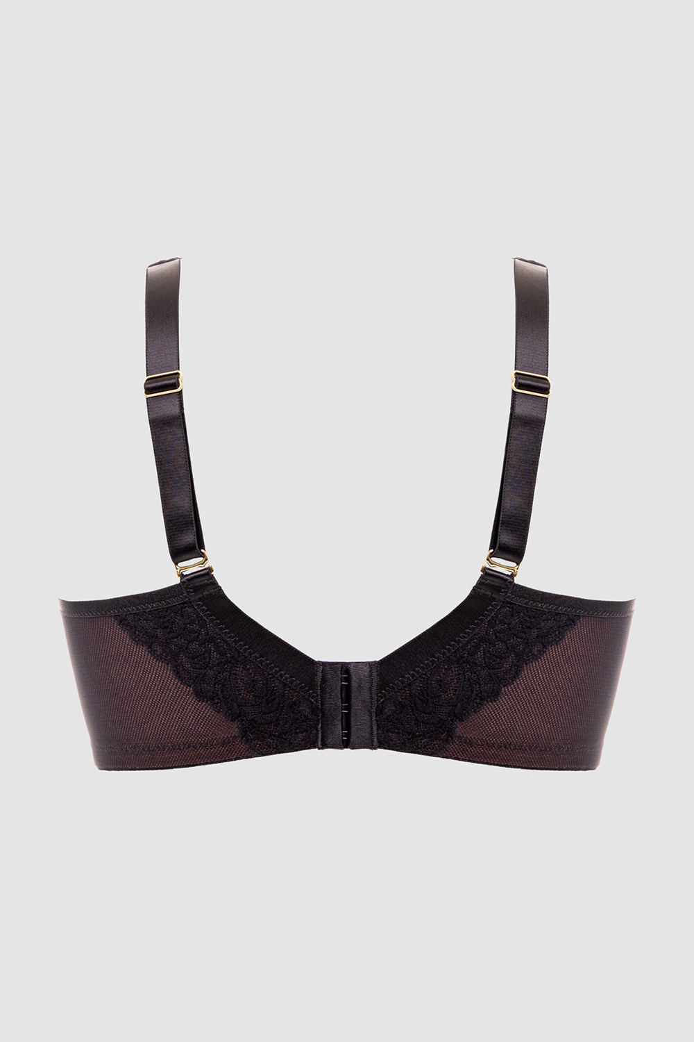 Бюстгальтер-бралетт ,  , для большого бюста Truffle Noir с мягкой чашкой на косточках. Внутри чашечки проложены эластичной сеточкой, внешняя сторона чашек покрыта роскошным кружевом. На спинке застежка на крючки-петли. Данная модель идеально подчеркнет форму вашего бюста, обеспечивая максимальный комфорт и удобство каждый день. Чашки бюстгальтера украшены стрэпами.
