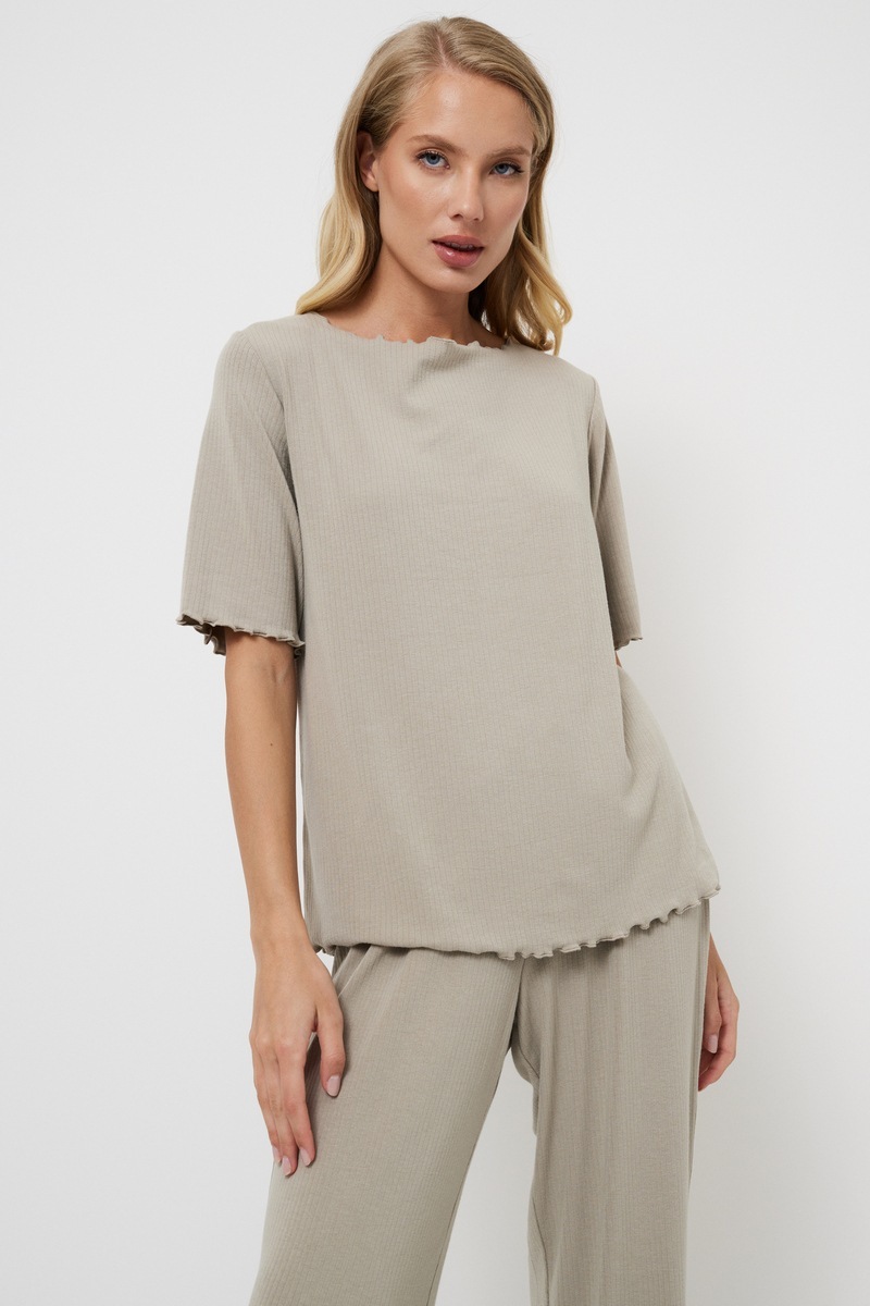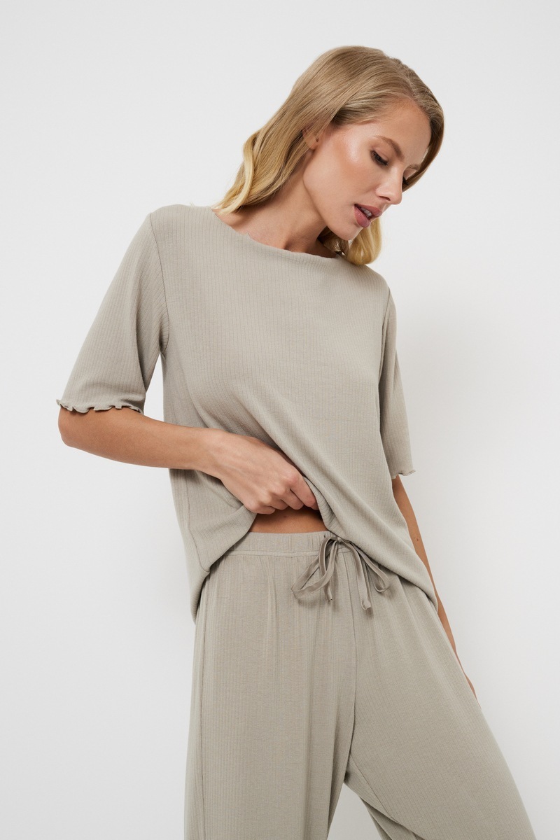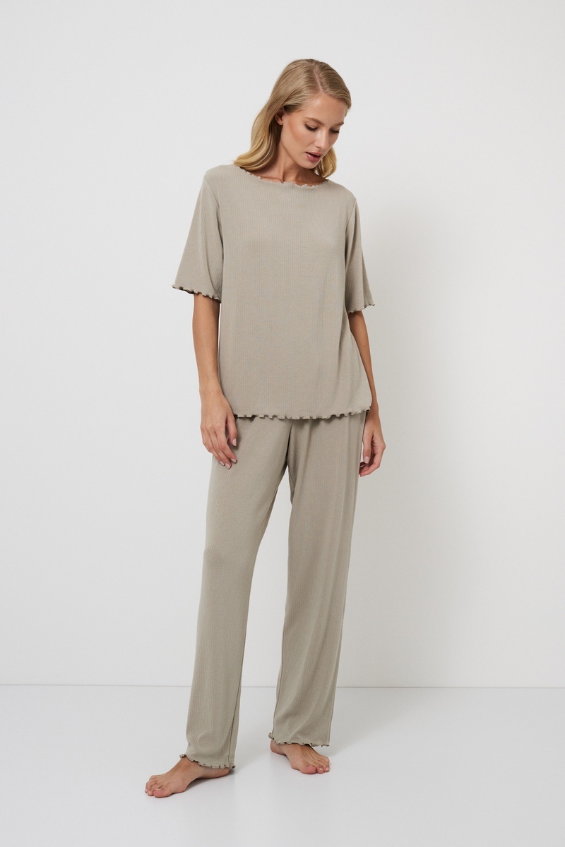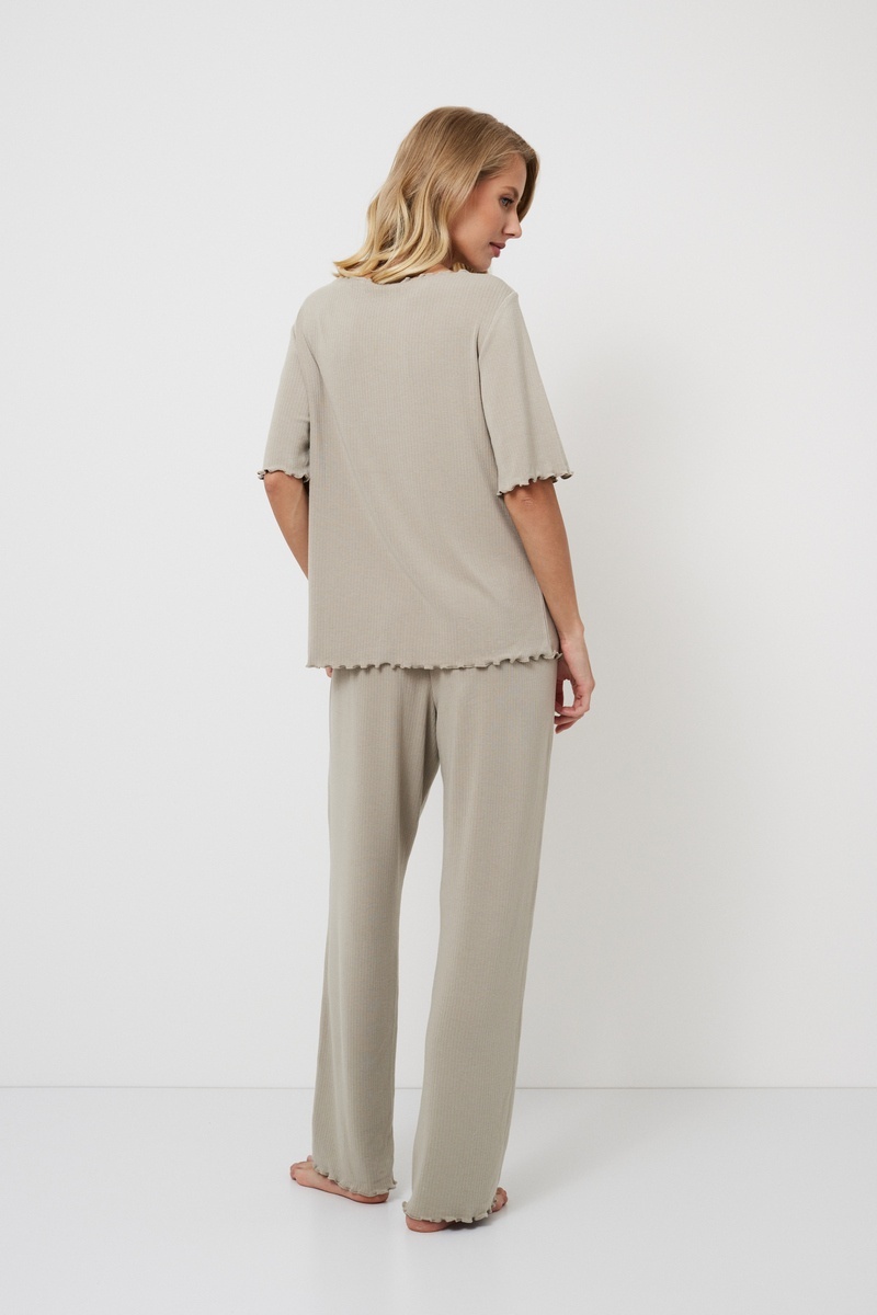 Представляем комплект Callie set long, в котором комфорт сочетается с непринужденным стилем! Погрузитесь в атмосферу расслабления с этим ансамблем из вискозы в рубчик однотонного серо-бежевого цвета, созданным для того, чтобы вы чувствовали себя уютно и шикарно. Топ с рукавами до локтя может похвастаться восхитительным эффектом складок на воротнике и рукавах. Брюки свободного кроя с удобным поясом и с регулируемой завязкой на поясе обеспечивают непринужденный крой. Комплект Callie set long идеально подходит для того, чтобы отдыхать и наслаждаться неторопливыми моментами. Это ваш выбор для максимального комфорта и непринужденной элегантности.