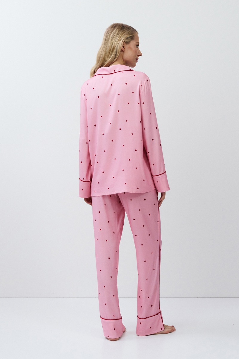Пижама женская со штанами CHERIE для вашего ночного комфорта. Пижама выполнена из эластичной вискозы. Рубашка на пуговицах, с длинными рукавами, отложным воротником. Окантовка придаёт изделию особую изысканность. Штаны свободные, с эластичным поясом. Расслабьтесь с максимальным комфортом и стилем в пижаме CHERIE.