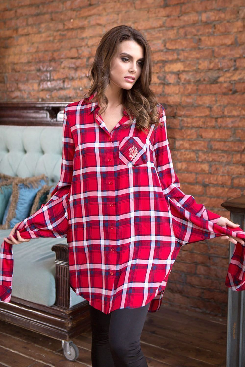 Туника Миа-Миа домашняя женская средней длины полуприлегающего силуэта из принтованной вискозы, с отложным воротником. Воротник рубашечного типа. В боковых швах имеются рукава, которые служат как поясом, так и действующими рукавами. Туника застегивается на пуговицы. На груди накладной карман с фирменной вышитой монограммой по ткани ручной работы.