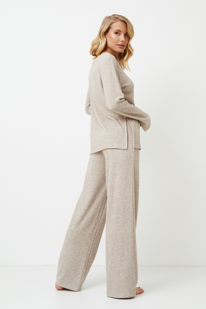 Представляем комплект Davina, который станет вашим идеальным выбором для непринужденного образа в стиле лаунж! Удлиненные рукава с боковыми разрезами и такие же боковые вырезы по фигуре дополнят ваш образ для отдыха. Широкие брюки обеспечивают неподвластный времени стиль и комфорт. Светло-коричневый цвет излучает тепло и уют, идеально подходит для того, чтобы расслабиться после долгого дня. Независимо от того, отдыхаете ли вы дома или выполняете поручения, в наборе Davina вы будете чувствовать себя комфортно и стильно.