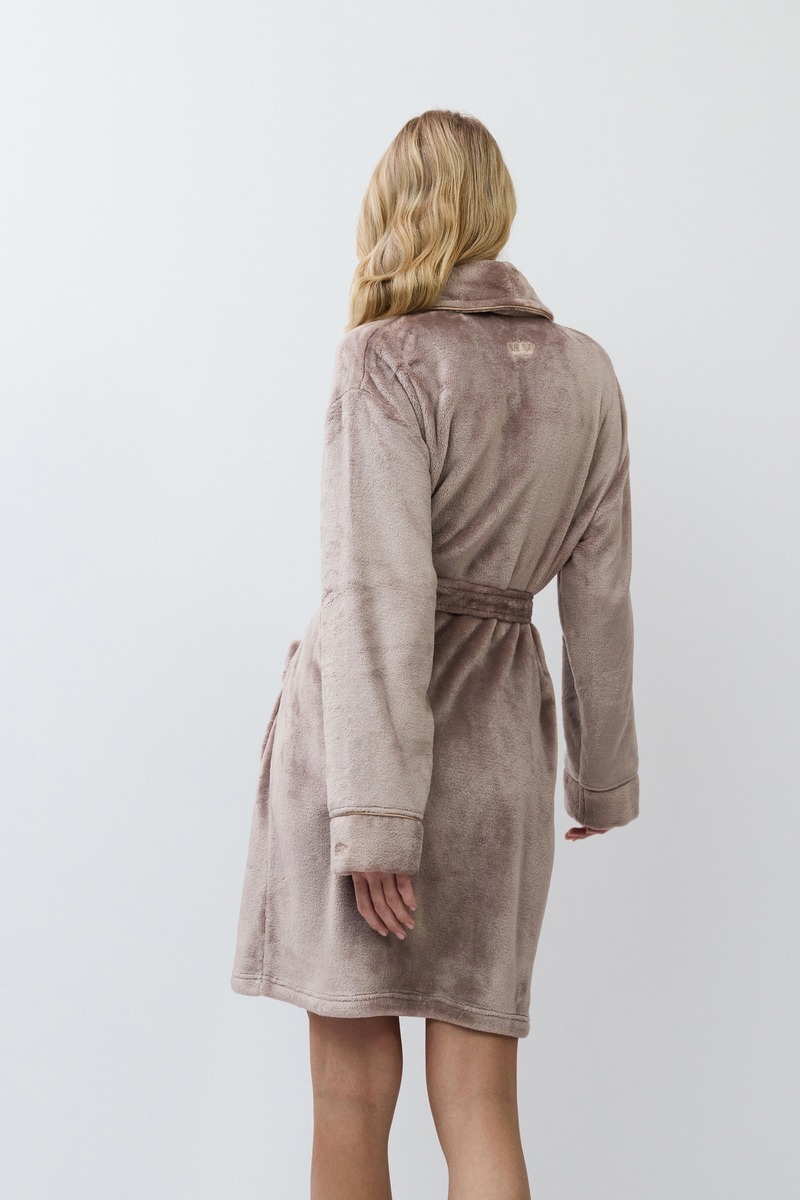 Расслабьтесь с комфортом в этом мягком и деликатном халате Eva. Халат изготовлен из чрезвычайно мягкой и деликатной флисовой ткани. Нижние края халата и карманы закруглены. Воротник, манжеты и карманы украшены изящной атласной окантовкой. И в довершение всего на манжете рукава вышита маленькая блестящая корона, потому что кому не нужна нотка королевского шика в одежде для отдыха?