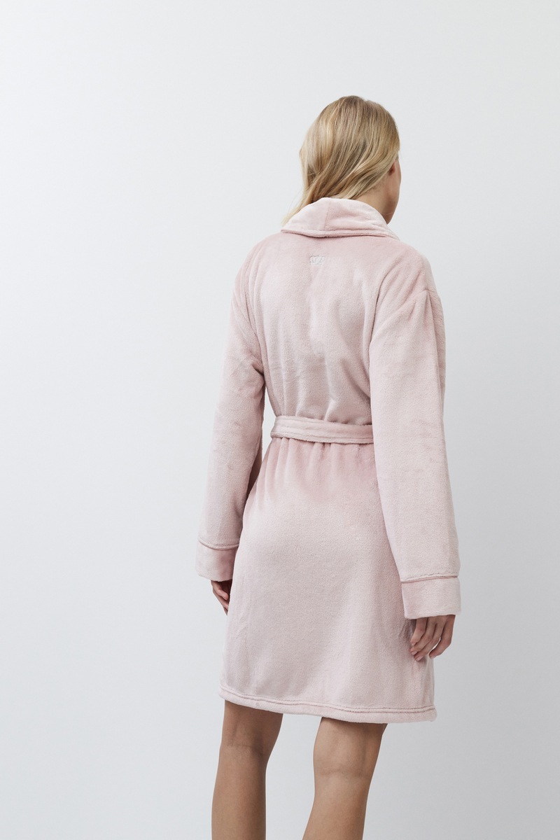 Расслабьтесь с комфортом в этом мягком и деликатном халате Eva. Халат изготовлен из чрезвычайно мягкой и деликатной флисовой ткани. Нижние края халата и карманы закруглены. Воротник, манжеты и карманы украшены изящной атласной окантовкой. И в довершение всего на манжете рукава вышита маленькая блестящая корона, потому что кому не нужна нотка королевского шика в одежде для отдыха?
