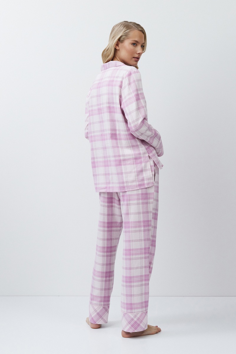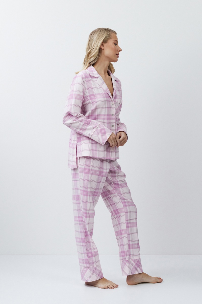 Пижама женская со штанами FABIOLA для вашего ночного комфорта. Пижама изготовлена из мягкого фланелевого хлопка с принтом в клетку. Рубашка на пуговицах, с длинными рукавами, отложным воротником и нагрудным карманом с логотипом "корона". Штаны свободные, с эластичным поясом с завязкой, по бокам карманы. Расслабьтесь с максимальным комфортом и стилем в пижаме FABIOLA.