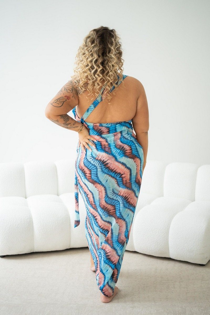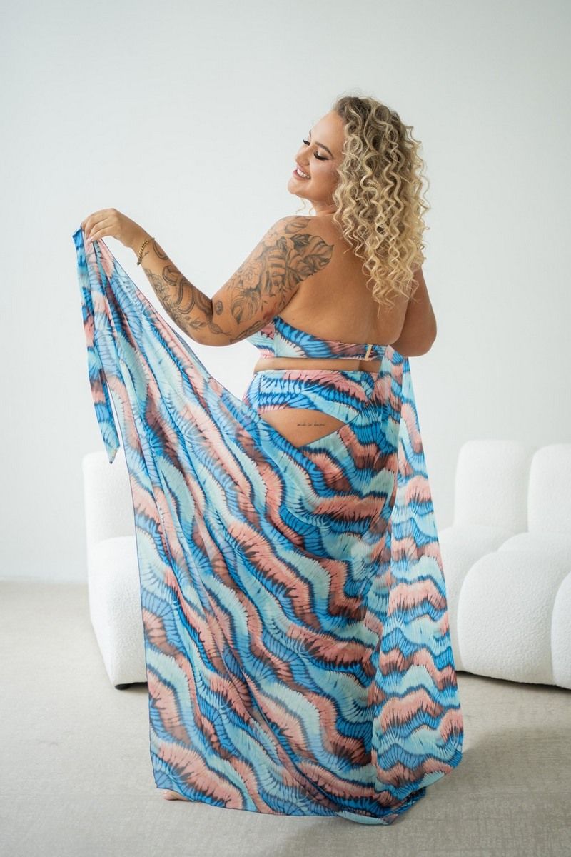 Размеры парео: ширина 149 см, высота 140 см, длина завязок 53 см.