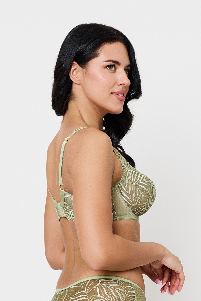 Бюстгальтер FLORANCE от европейского производителя Subtille. Мягкая чашка на кости, конструкция чашки S-01 мягкая чашка с Т-образным кроем более открытая форма. Несъемные регулируемые бретели. Выполнен из микросетки и кружева. Золотые детали. Фирменный логотип Subtille.