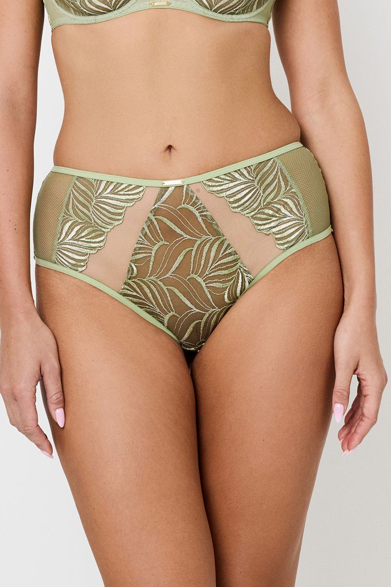 Трусы высокие FLORANCE от европейского производителя Subtille. Модель выполнена из кружева и микросетки. Золотые детали. Фирменный логотип Subtille. Ластовица хлопковая.