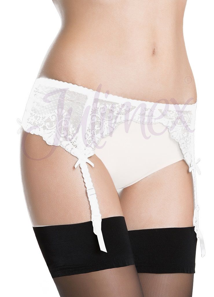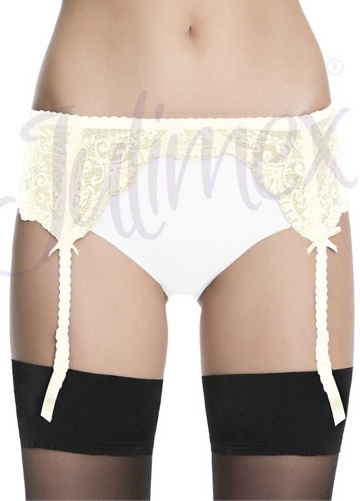 Кружевной пояс для чулок с восточным мотивом арабески. Имеет регулируемые застежки и ремешки для чулок, дополнительно украшеные маленькими бантиками. Доступен в трех цветах: черном, белом или бежевый.