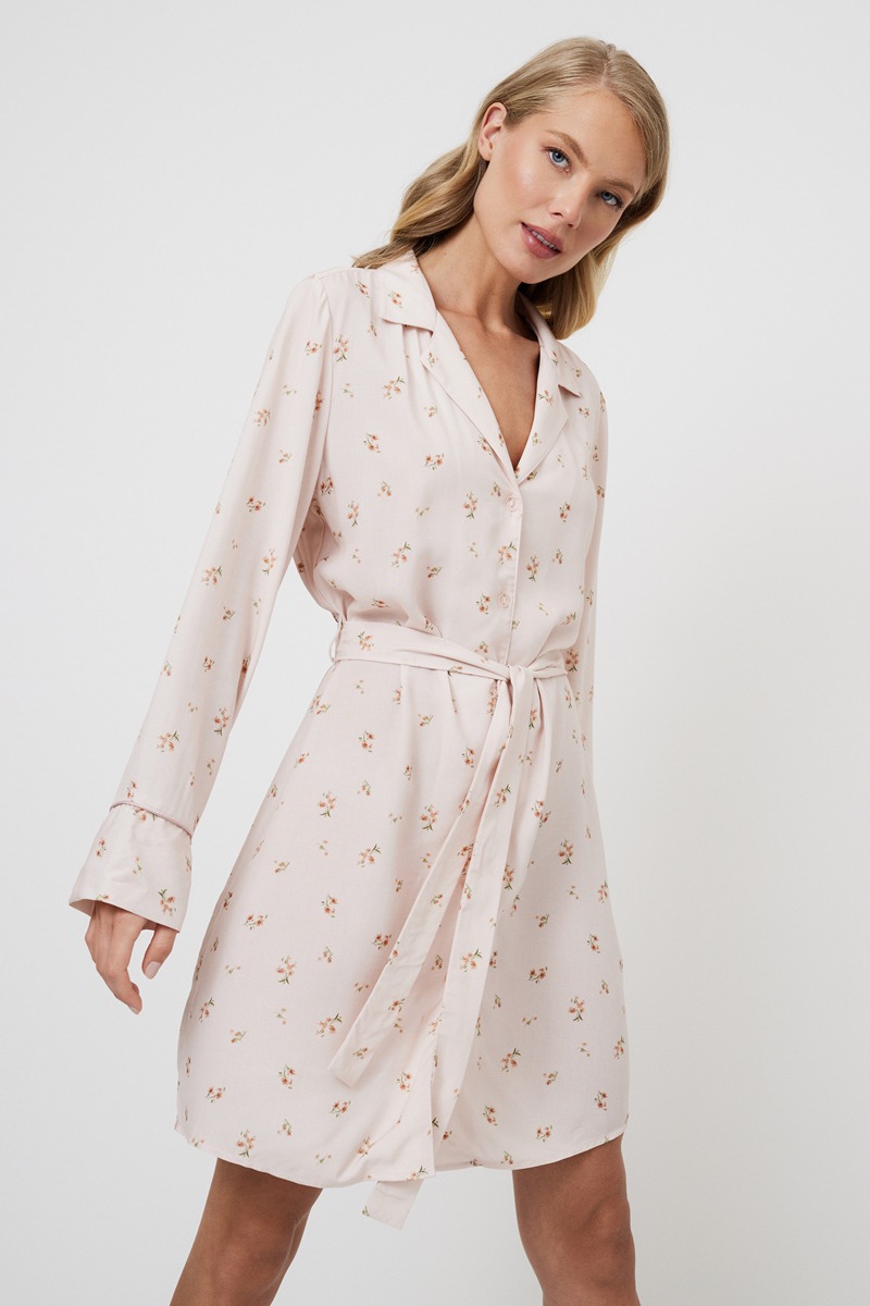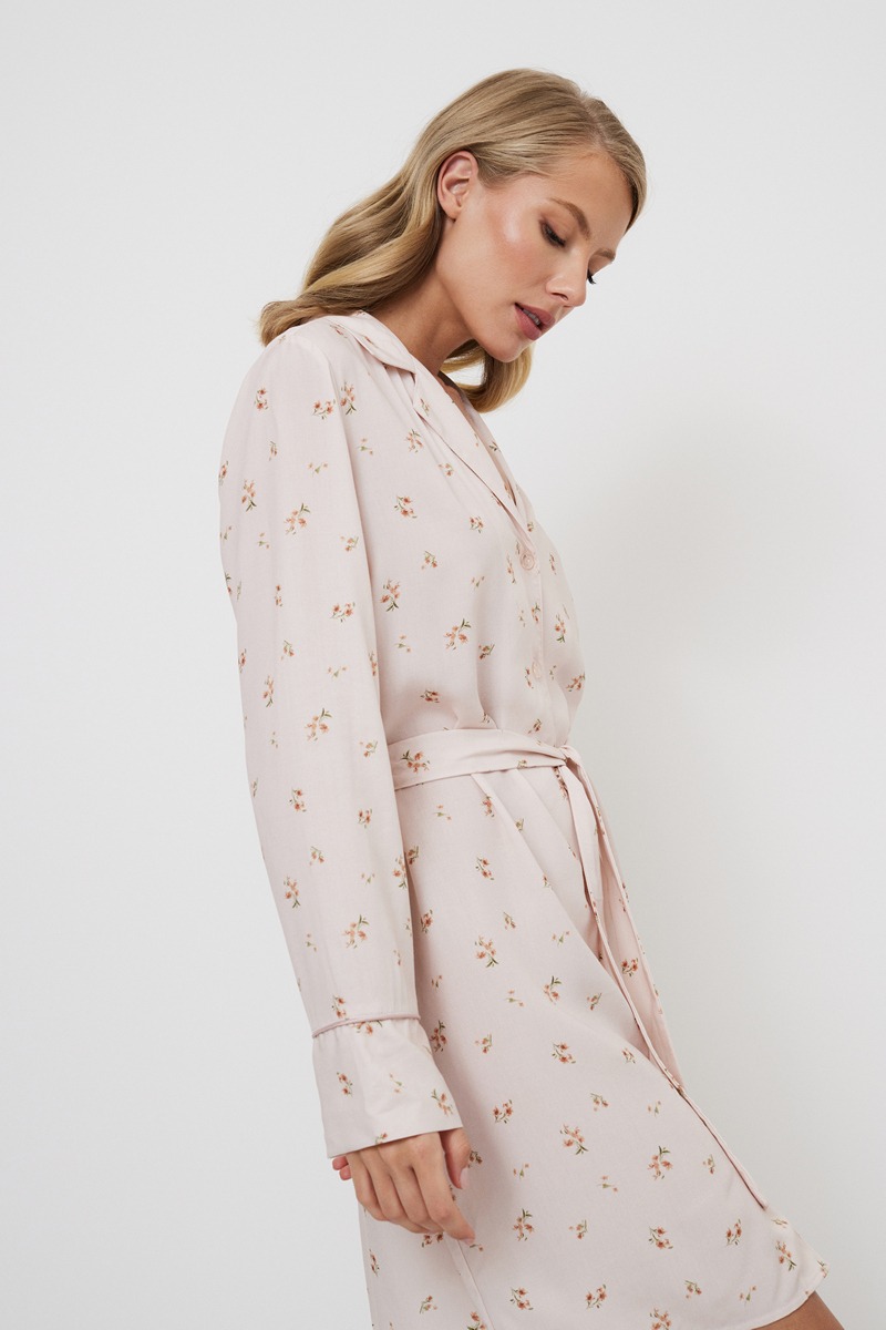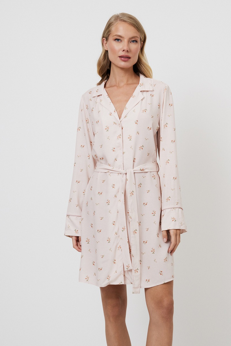 Представляем вам нашу изысканную ночную сорочку Freesia, в которой элегантность сочетается с комфортом. Выполнена из лёгкой вискозы, она окутывает вас роскошной мягкостью, обещая ночи безмятежного сна. Ночная сорочка на пуговицах, с длинными рукавами, V-образным вырезом и поясом изящно подчёркивает ваши изгибы. Украшена очаровательной розовой окантовкой на манжетах, она добавляет игривости цветочному узору. Наденьте сорочку Freesia и погрузитесь в сказочный мир цветочной элегантности, где каждое мгновение похоже на причудливую прогулку по саду.