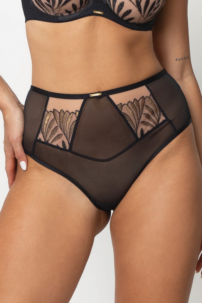 Трусы с высокой посадкой FRIDA от европейского производителя Subtille. Модель выполнена из нежного микротюля с добавлением блестящей цветочной вышивки, задняя часть из двойного микротюля. Хлопковая ластовица.