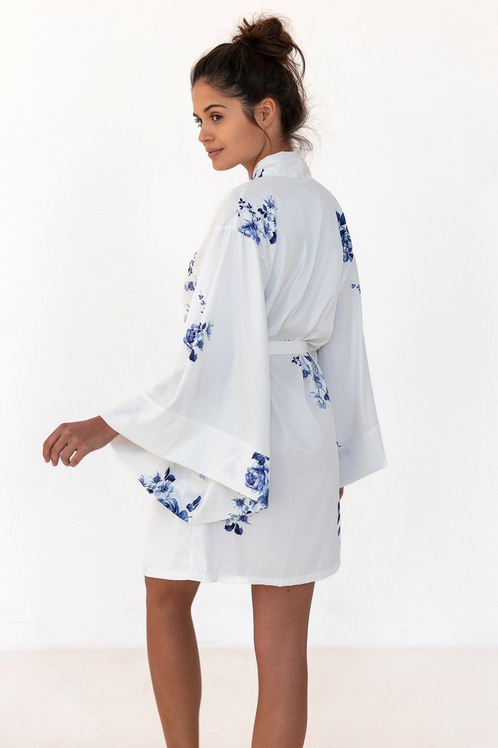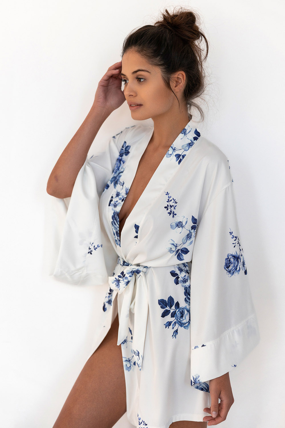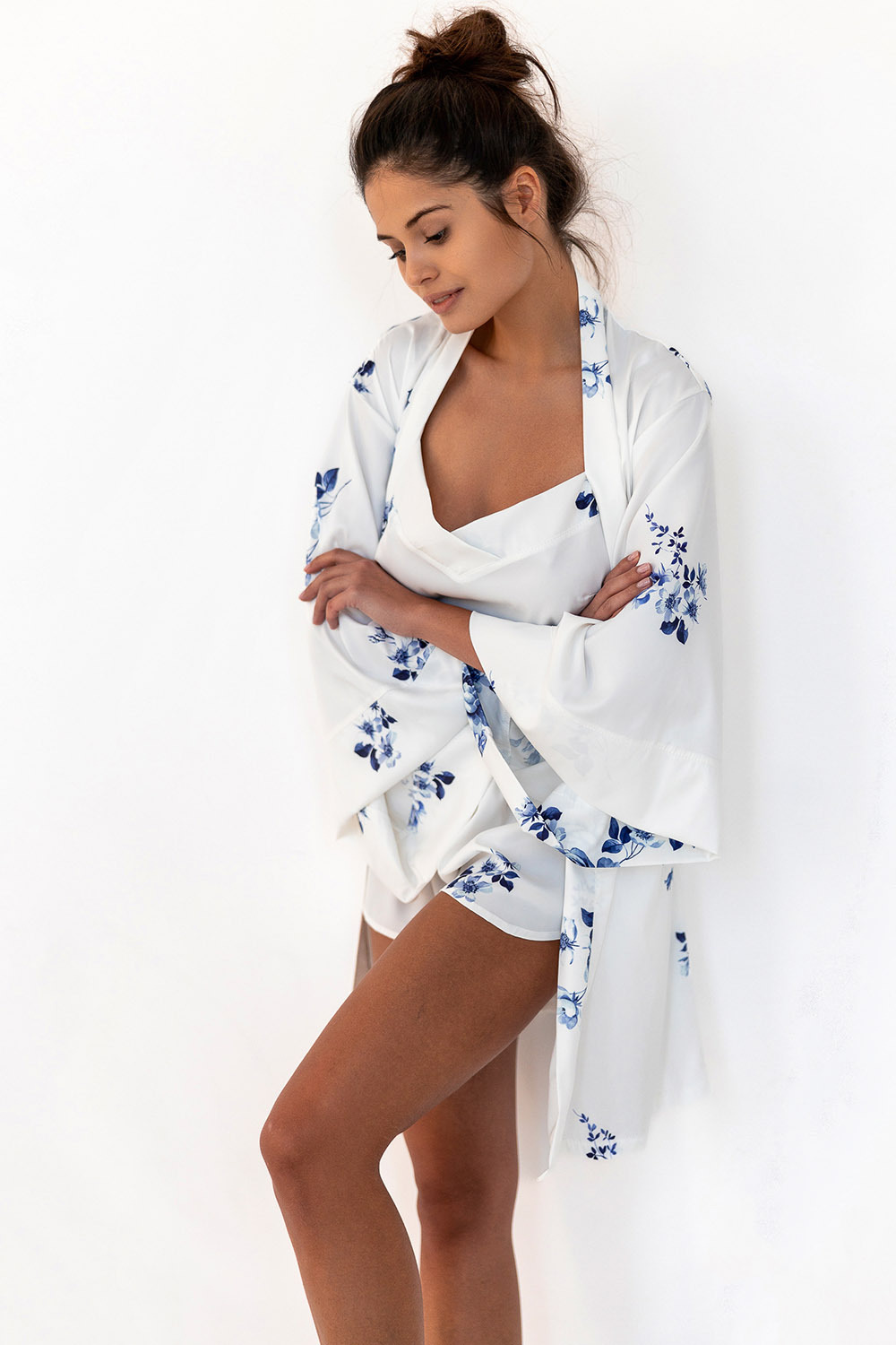 Атласный запашной халат Gladys с длинными рукавами, декорирован очаровательным цветочным принтом. В комплекте идет пояс. Идеальный вариант для домашнего отдыха.