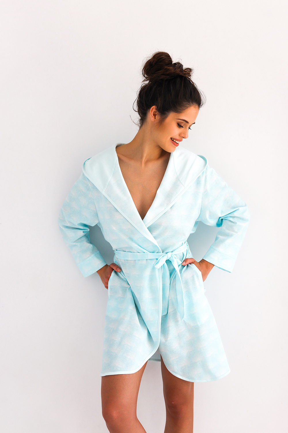 Оригинальный халат Greta с капюшоном и длинными рукавами. Выполнен из хлопкового полотна с градиентным принтом. Идеально подойдет для сна или отдыха в домашней обстановке.