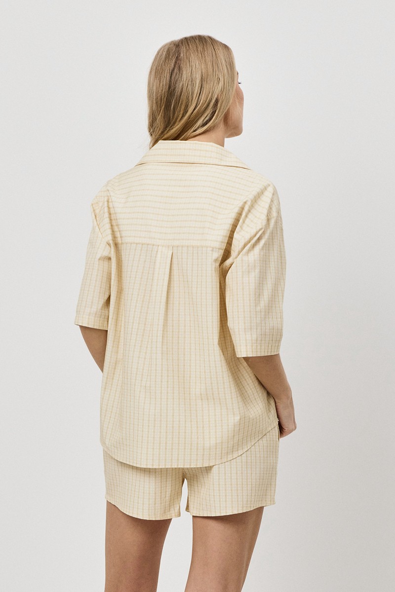 Пижама женская с шортами HALO для вашего ночного комфорта. Пижама выполнена из хлопка с вискозой. Рубашка на пуговицах, с короткими рукавами, отложным воротником и нагрудным карманом. Шорты свободные с эластичным поясом. Расслабьтесь с максимальным комфортом и стилем в пижаме HALO.