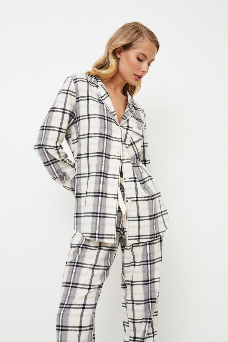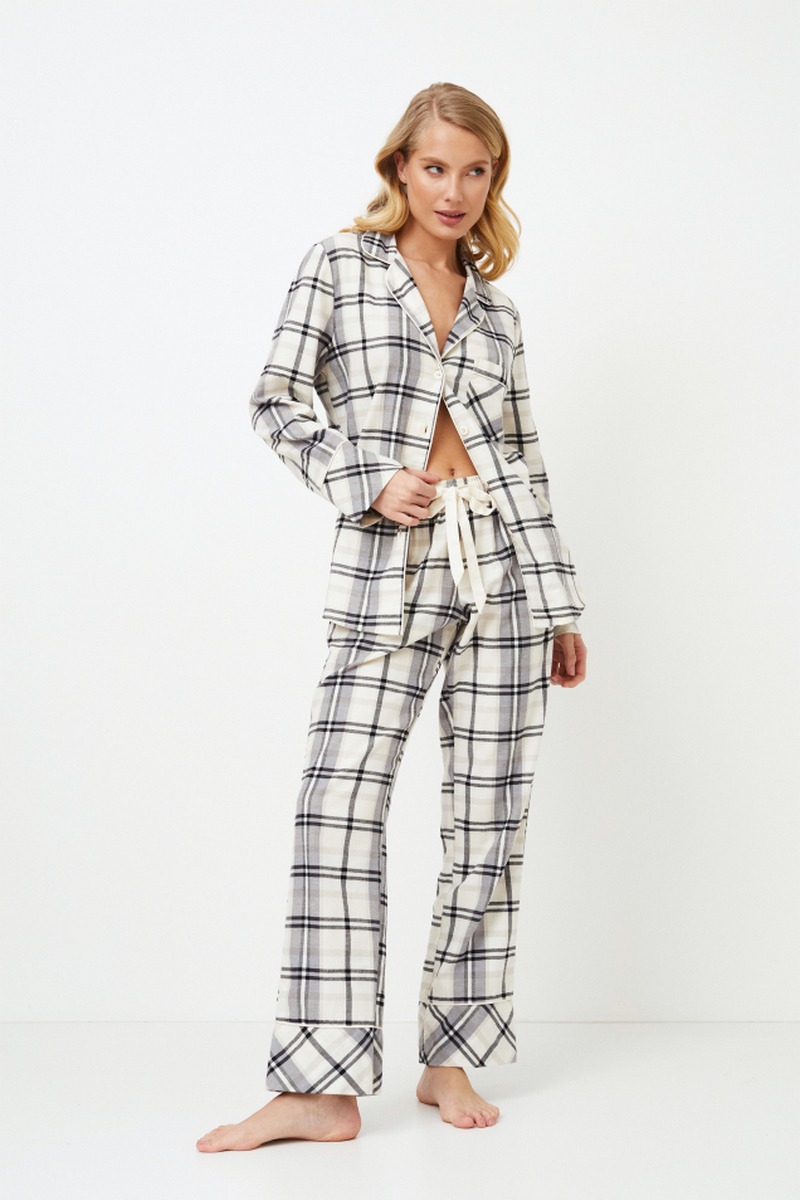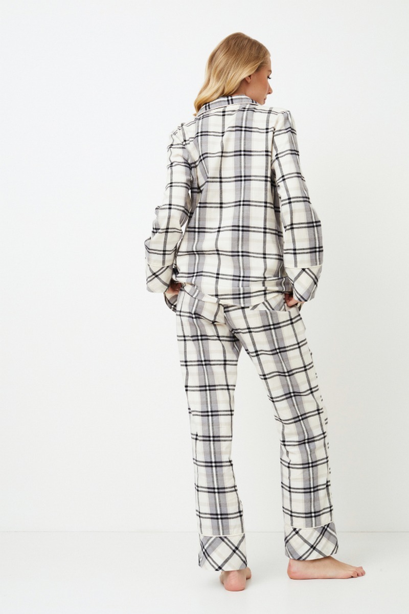 Представляем длинную пижаму Henrietta, в которой уют идеально сочетается с элегантным стилем. Выполнена из мягкого хлопка, украшенного вечным рисунком в белую и серую клетку. Рубашка с длинными рукавами, V-образным вырезом горловины, застежкой спереди на пуговицы, манжетами на рукавах и нагрудным карманом дополнена кантом. В сочетании с брюками классического кроя с завязкой на талии и карманами этот комплект обеспечивает комфорт и функциональность. Расслабьтесь с максимальным комфортом и стилем в пижаме Henrietta pajama long, созданной для того, чтобы скрасить ваши вечера непревзойденным уютом и изысканностью. Изделие выполнено из хлопкового фланеля.