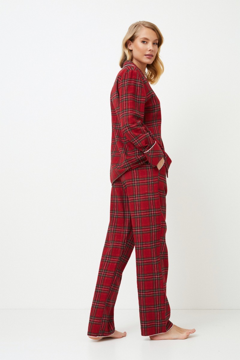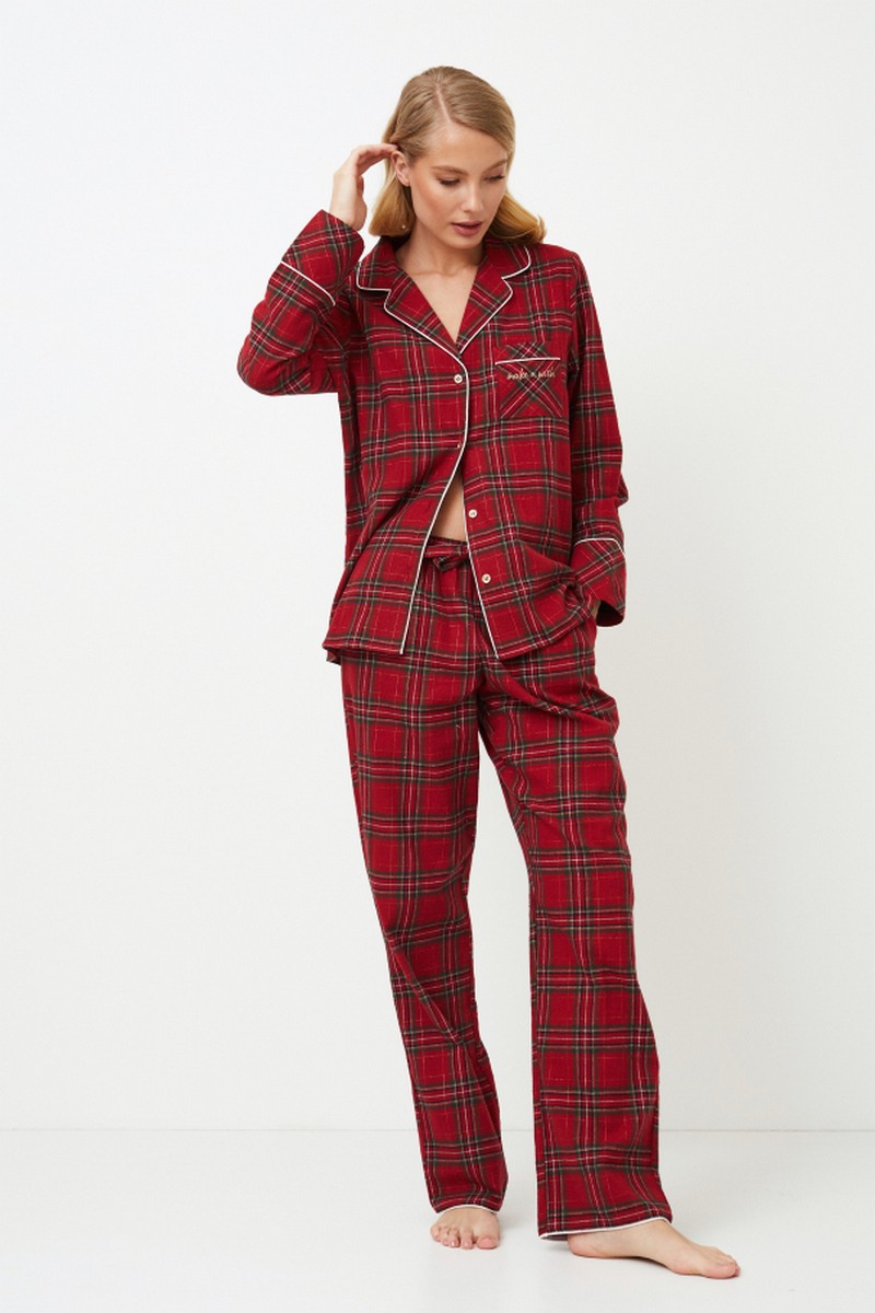 Представляем вашему вниманию длинную пижаму Holly, которая станет незаменимым аксессуаром на зиму. Комплект из мягкого матового хлопка в классическую рождественскую красную клетку. Топ с длинными рукавами и застежкой на пуговицы, v-образным вырезом горловины и нагрудным карманом, украшенным золотой вышивкой "Загадай желание", придает изделию особый шарм. В сочетании с широкими брюками, украшенными карманами, это создает ощущение комфорта. Не забудьте обратить внимание на изящную белоснежную окантовку на вырезе и манжетах рукавов по низу брюк. Приготовьтесь к стильному отдыху в пижаме Holly pajama long, которая идеально подойдет для холодных зимних ночей. И не забудьте, что, пока вы наслаждаетесь уютом своей пижамы Holly pajama long, почему бы не подарить своей второй половинке пижаму Hendrix pajama long? Это идеальный способ поделиться теплом и стилем сезона вместе. Изделие выполнено из хлопкового фланеля.
