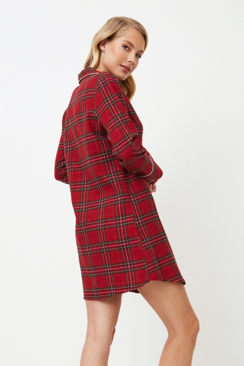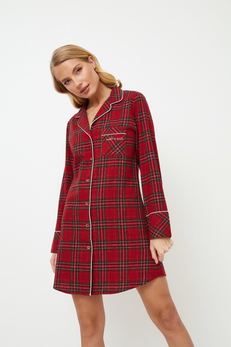 Представляем ночную рубашку Holly, незаменимую вещь на зиму. Платье из мягкого матового хлопка в классическую рождественскую красную клетку. Ночная рубашка с длинными рукавами, застегивающаяся на пуговицы, имеет v-образный вырез горловины и нагрудный карман с золотой вышивкой "Загадай желание" для придания шарма. Воротник, карман и манжеты рукавов отделаны нежным белоснежным кантом. Приготовьтесь к стильному отдыху в ночной рубашке Holly, которая станет вашим идеальным выбором для холодных зимних ночей. И не забудьте, что, пока вы наслаждаетесь уютом своей ночной рубашки Holly, почему бы не подарить своей второй половинке пижаму Hendrix pajama long? Это идеальный способ поделиться теплом и стилем этого сезона вместе. Изделие выполнено из хлопкового фланеля.
